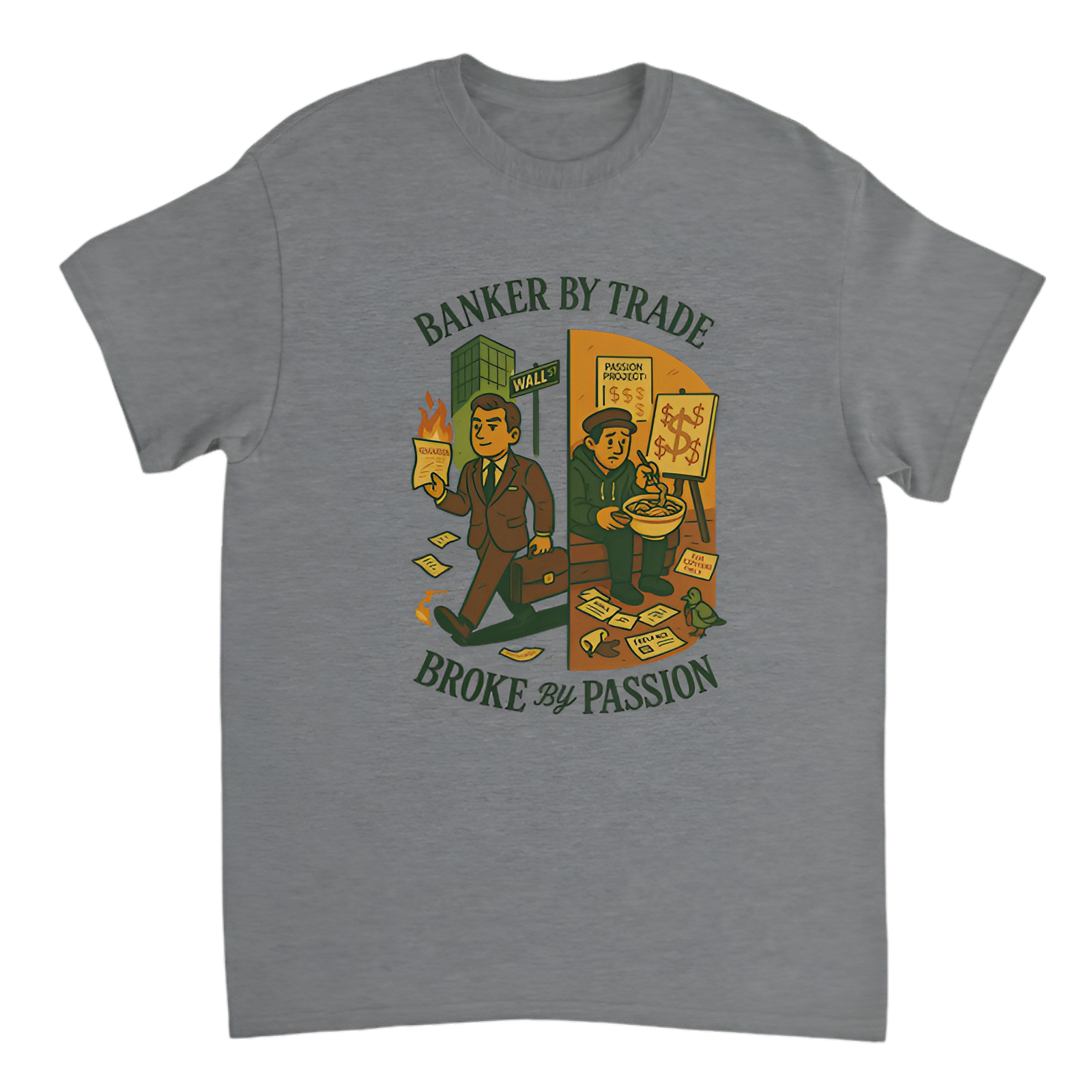 Show off your love-hate relationship with finance in this witty “Banker by trade, broke by passion” t-shirt from the Broke Banker series. Perfect for anyone who’s passionate about banking but knows the struggle is real. Made with soft, breathable fabric, this tee offers comfort and style with a clever edge.