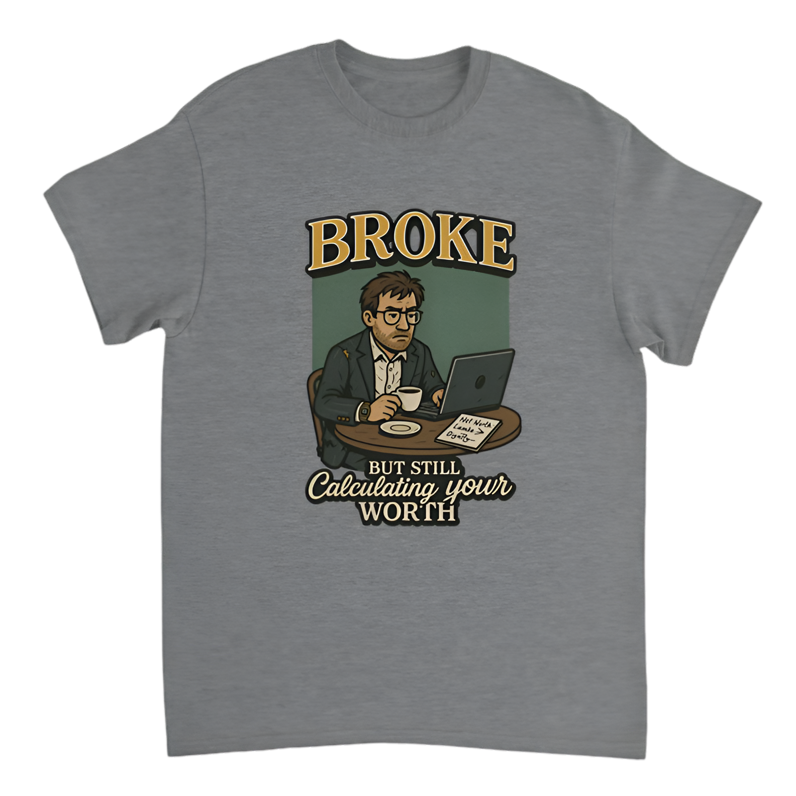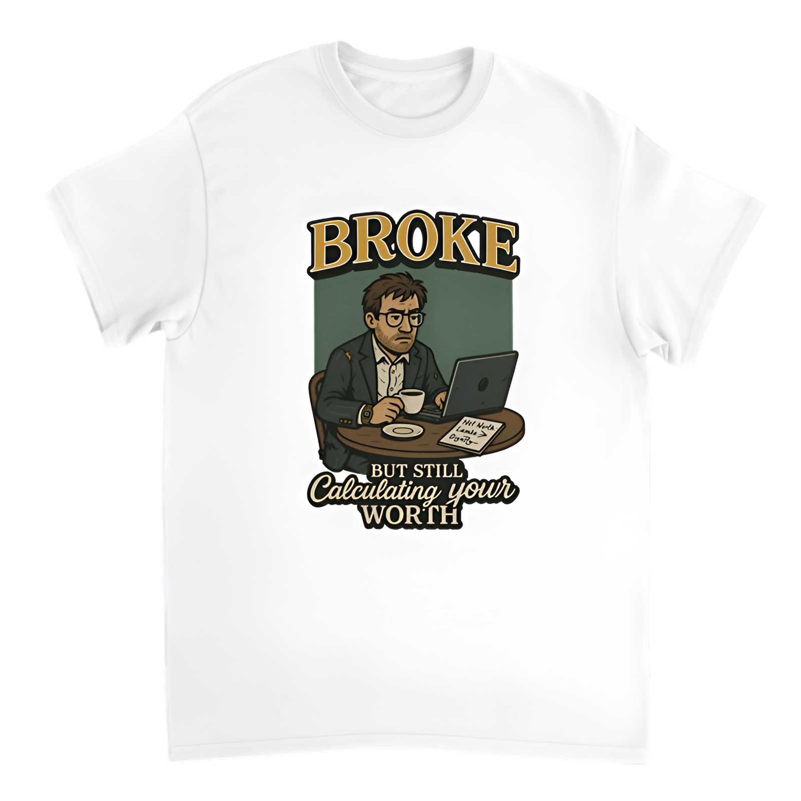 Keep your financial wit alive even when funds are low with this clever “Broke, but still calculating your worth” t-shirt from the Broke Banker collection. This tee perfectly captures the irony of staying sharp in finance despite the struggle. Made from soft, breathable fabric, it offers a comfortable fit while letting you flaunt your savvy humor.