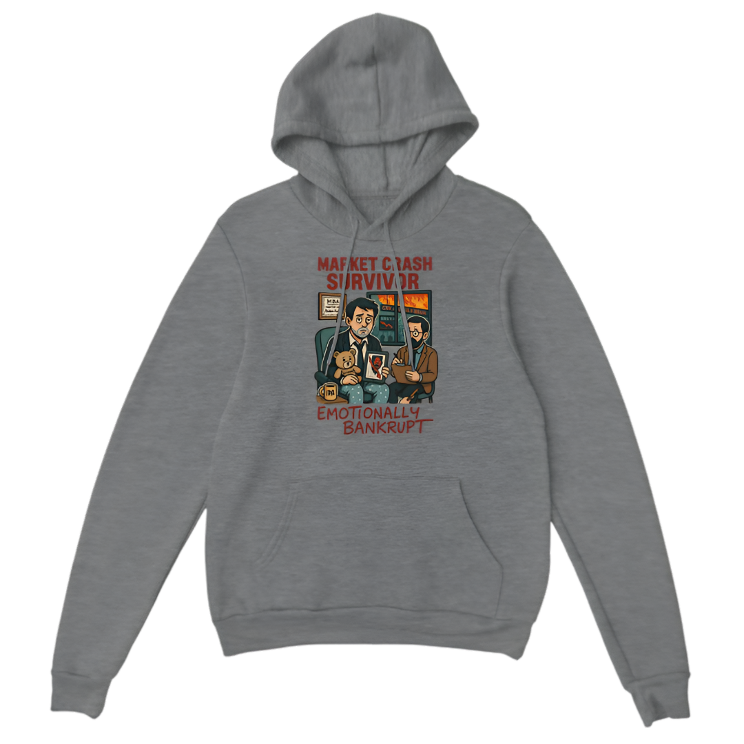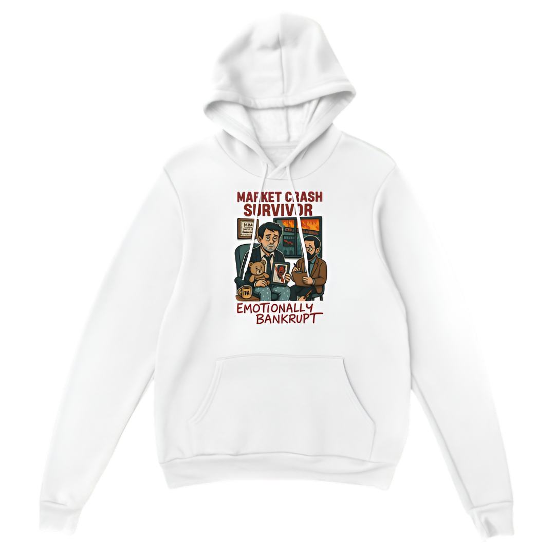 Wear your finance battle scars with pride in this “Market crash survivor. Emotionally bankrupt” hoodie from the Broke Banker collection. Perfect for those who’ve faced financial storms and come out laughing. Crafted from soft, warm fabric, this hoodie offers comfort and humor in one.