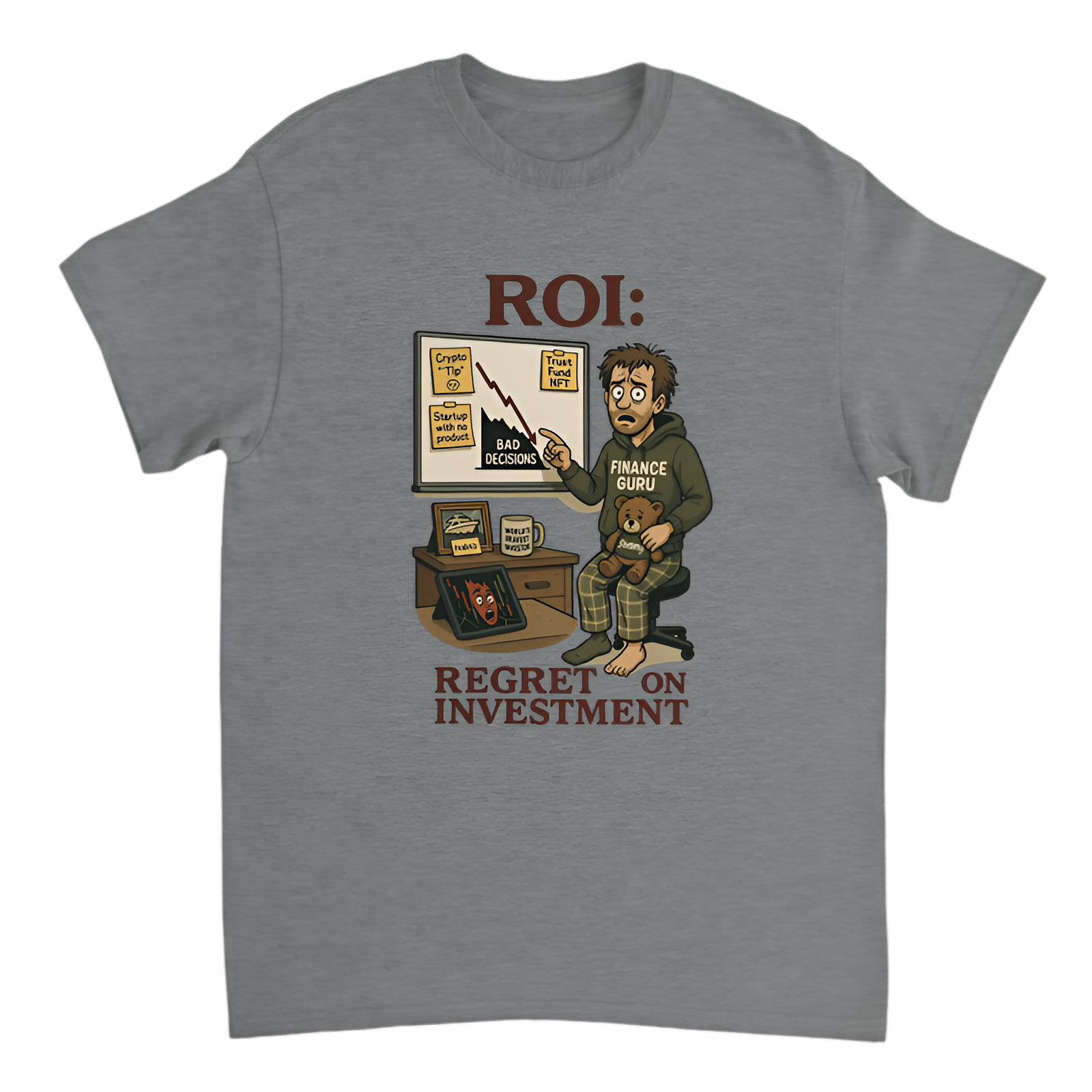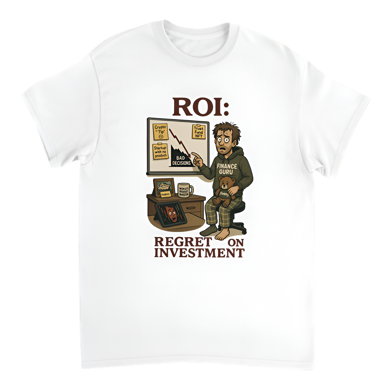 Make a sharp, witty statement with this “ROI: Regret on Investment” t-shirt from the Broke Banker collection. Perfect for those who’ve learned the hard way that not all investments pay off. Crafted with soft, breathable fabric, this tee combines humor and finance savvy in a comfortable, stylish design.