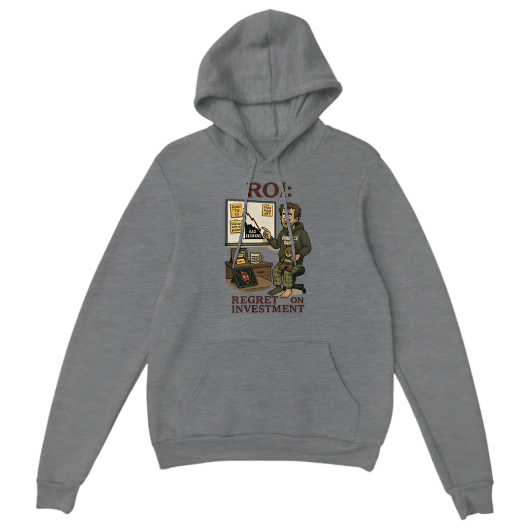 Broke Banker hoodie, finance humor hoodie, ROI joke hoodie, regret on investment hoodie, sarcastic finance apparel, broke banker clothing, witty finance hoodie, investor gift idea
