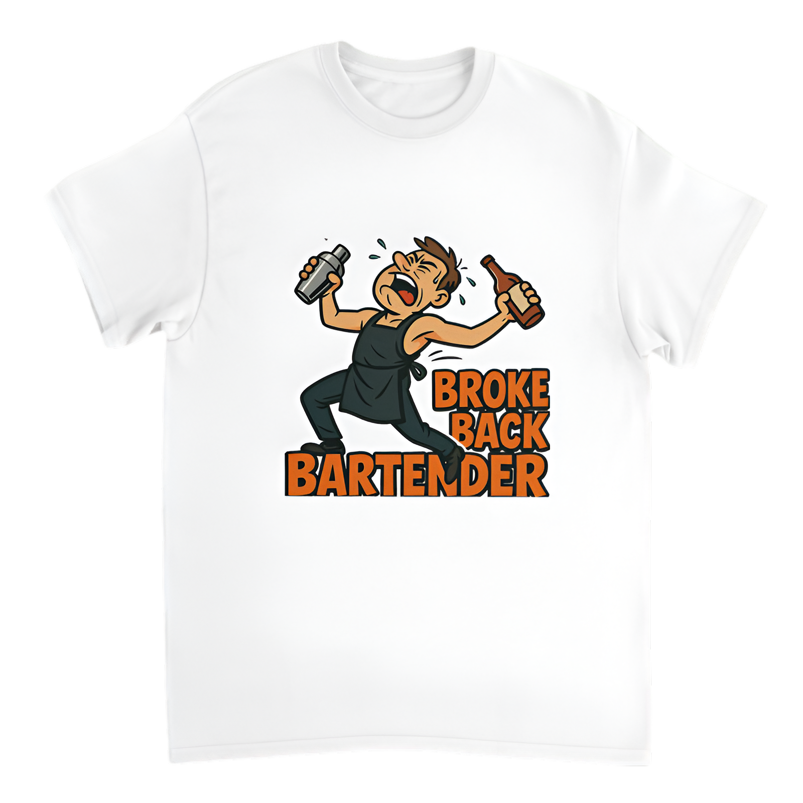 Broke Back Bartender t-shirt, Funny bartender shirt, Bar staff humor tee, Service industry apparel, Mixologist gift shirt, Sarcastic work shirt, Bartender off-duty wear, T-shirt for cocktail lovers