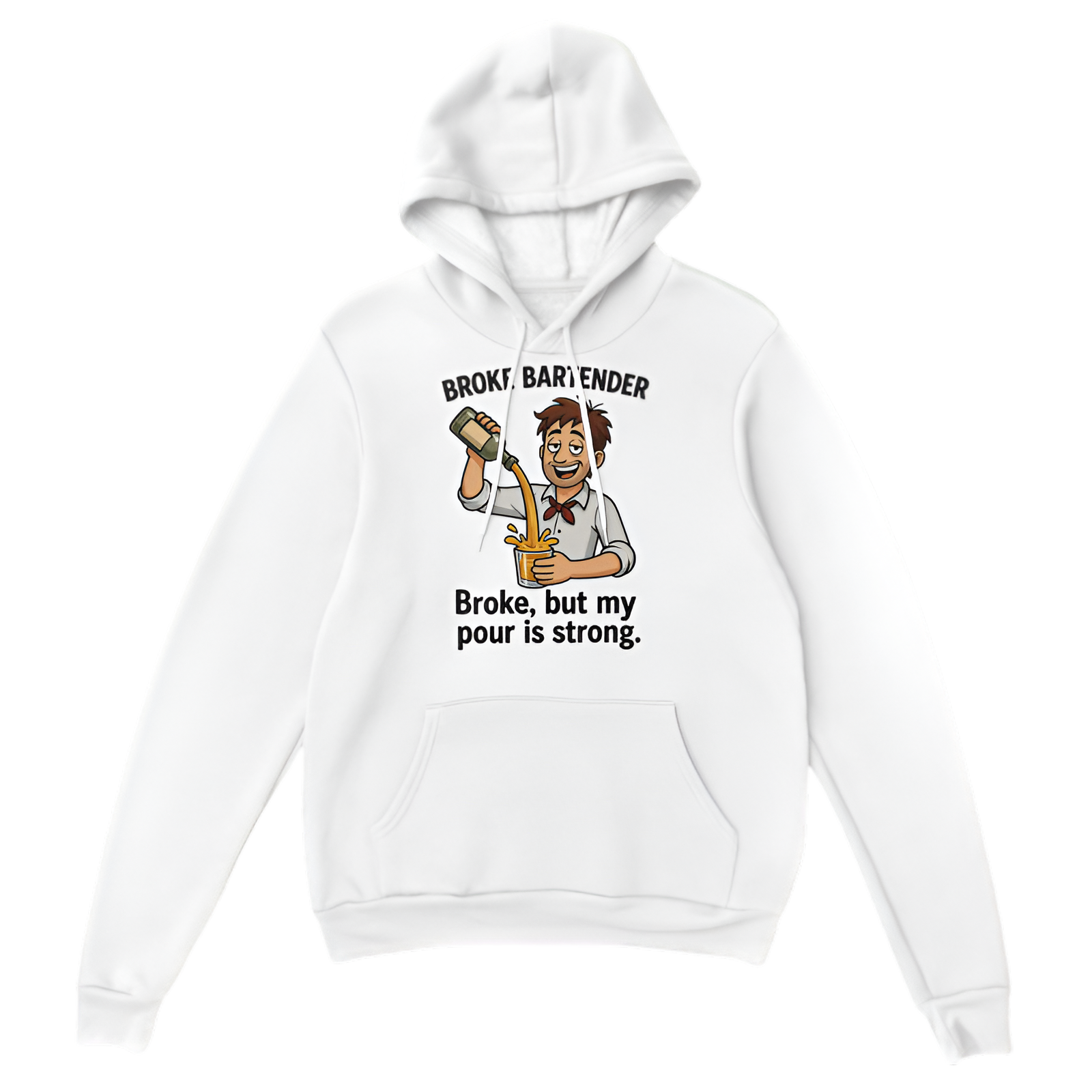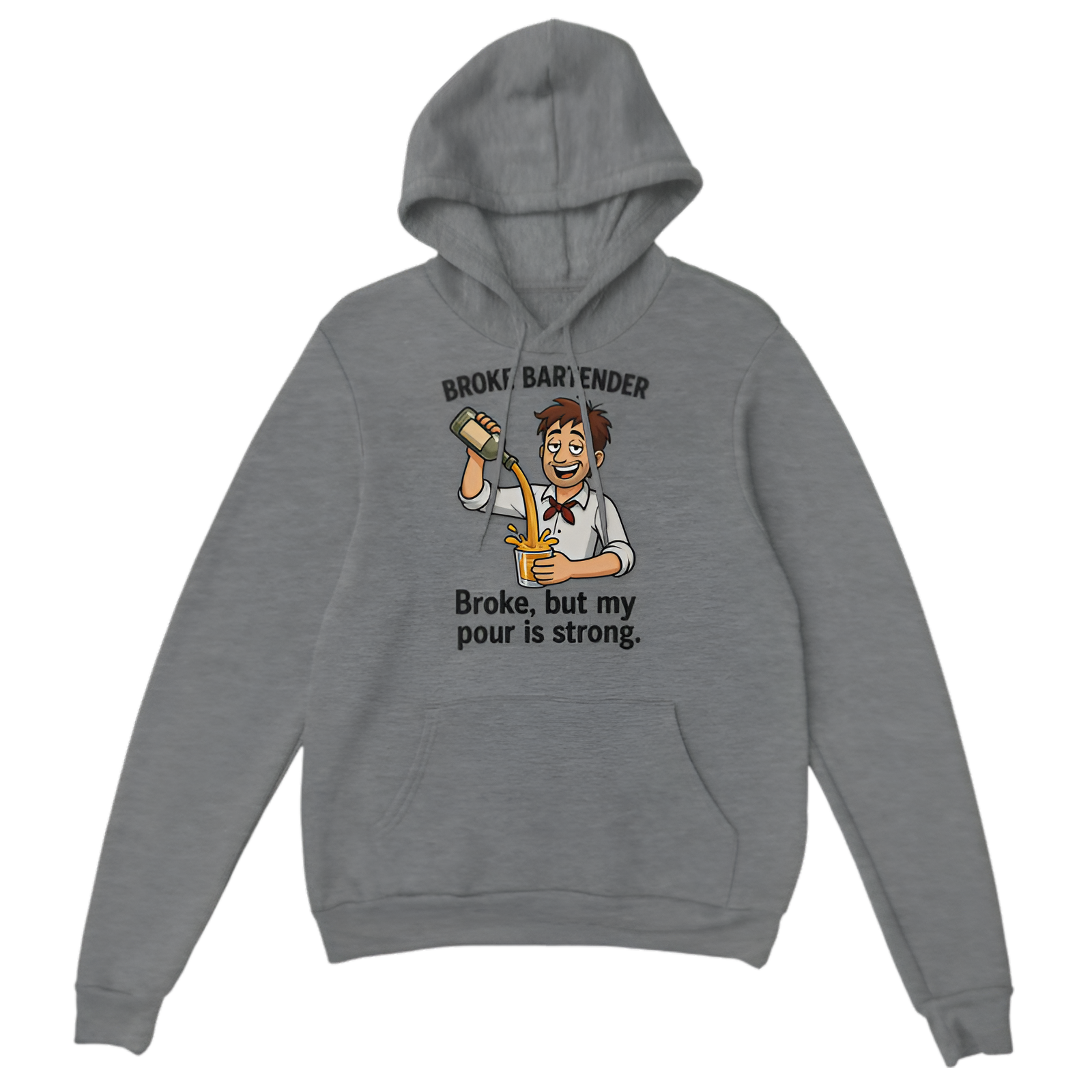 Broke but my pour is strong hoodie, Funny bartender hoodie, Bartender humor sweatshirt, Strong pour bartender apparel, Cocktail lover hoodie, Bartender gift hoodie, Service industry hoodie, Humor for bartenders hoodie