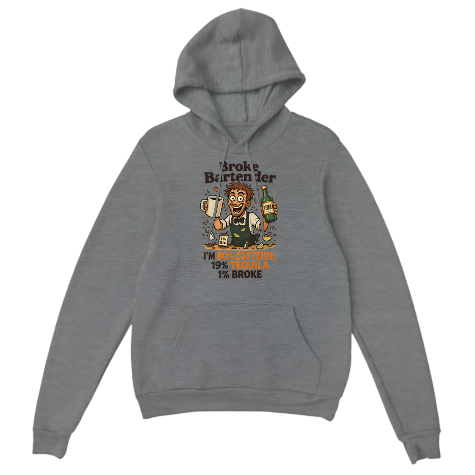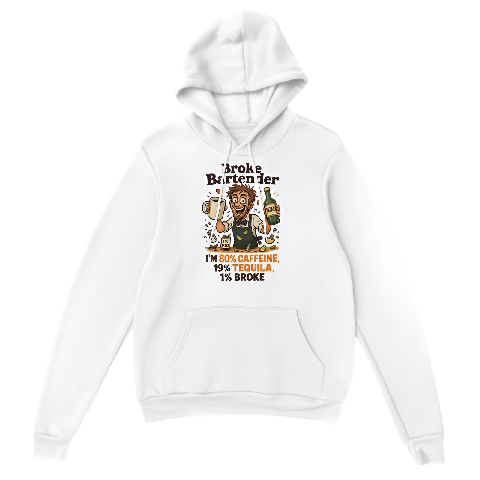 The 80% Caffeine, 19% Tequila, 1% Broke hoodie is perfect for those who run on espresso shots, late-night shifts, and just a sprinkle of “not-so-great” financial decisions. Whether you’re powering through a shift or recovering from last night’s tequila-fueled adventures, this hoodie has you covered. Soft, cozy, and with a dash of humor, it’s the perfect match for your lifestyle—work hard, drink harder, and still try to make it to brunch.