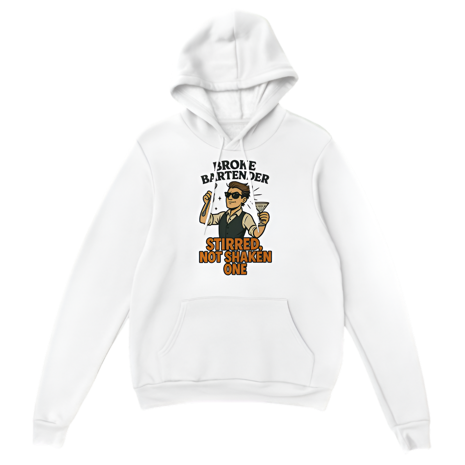 The Stirred, Not Shaken One hoodie is made for the lowkey legends behind the bar—the ones who keep it cool, calm, and always collected. Whether you're mixing up a classic Negroni or managing a Friday night rush without breaking a sweat, this hoodie speaks your language. Comfy, cozy, and full of personality, it's perfect for the bartender who brings smooth energy with every pour.