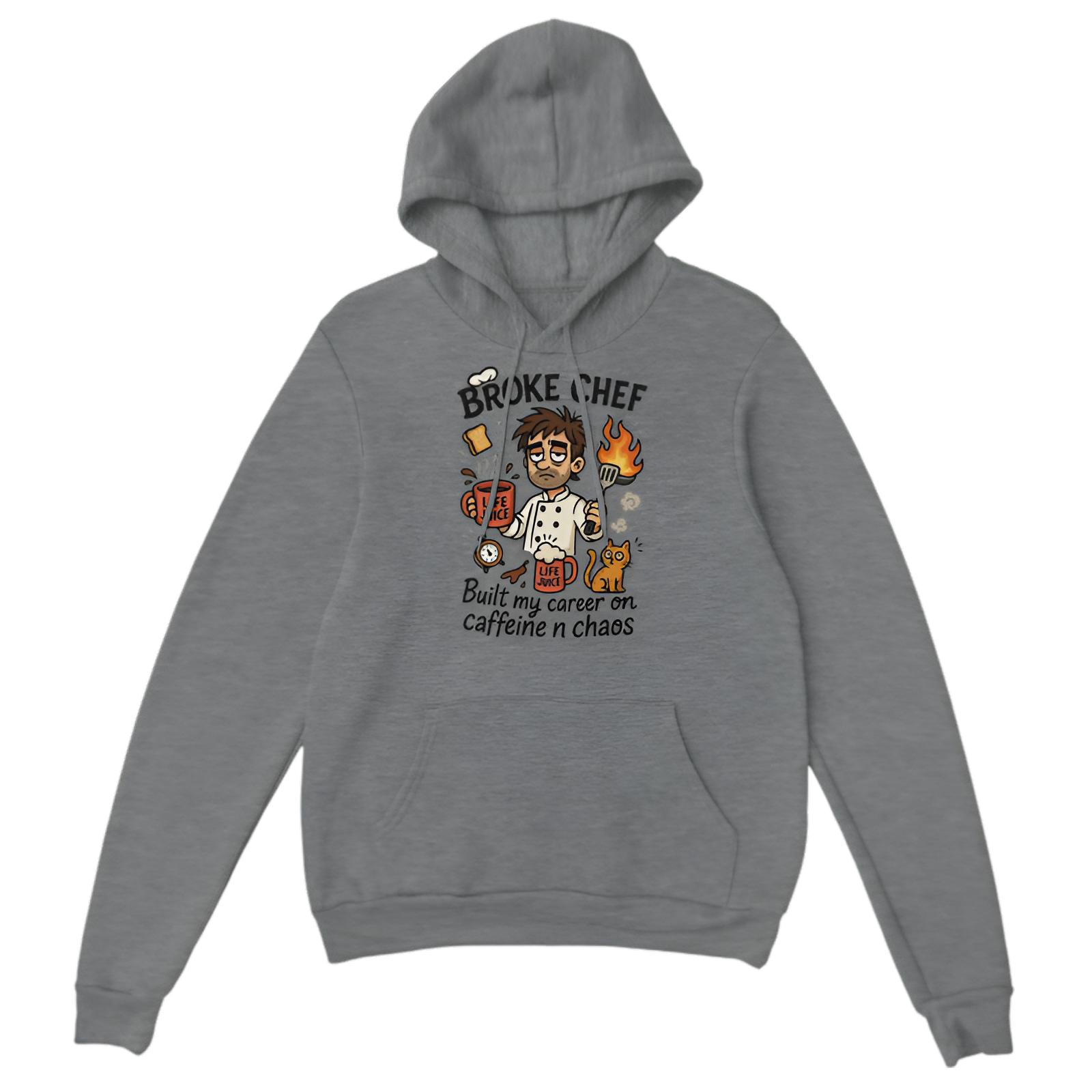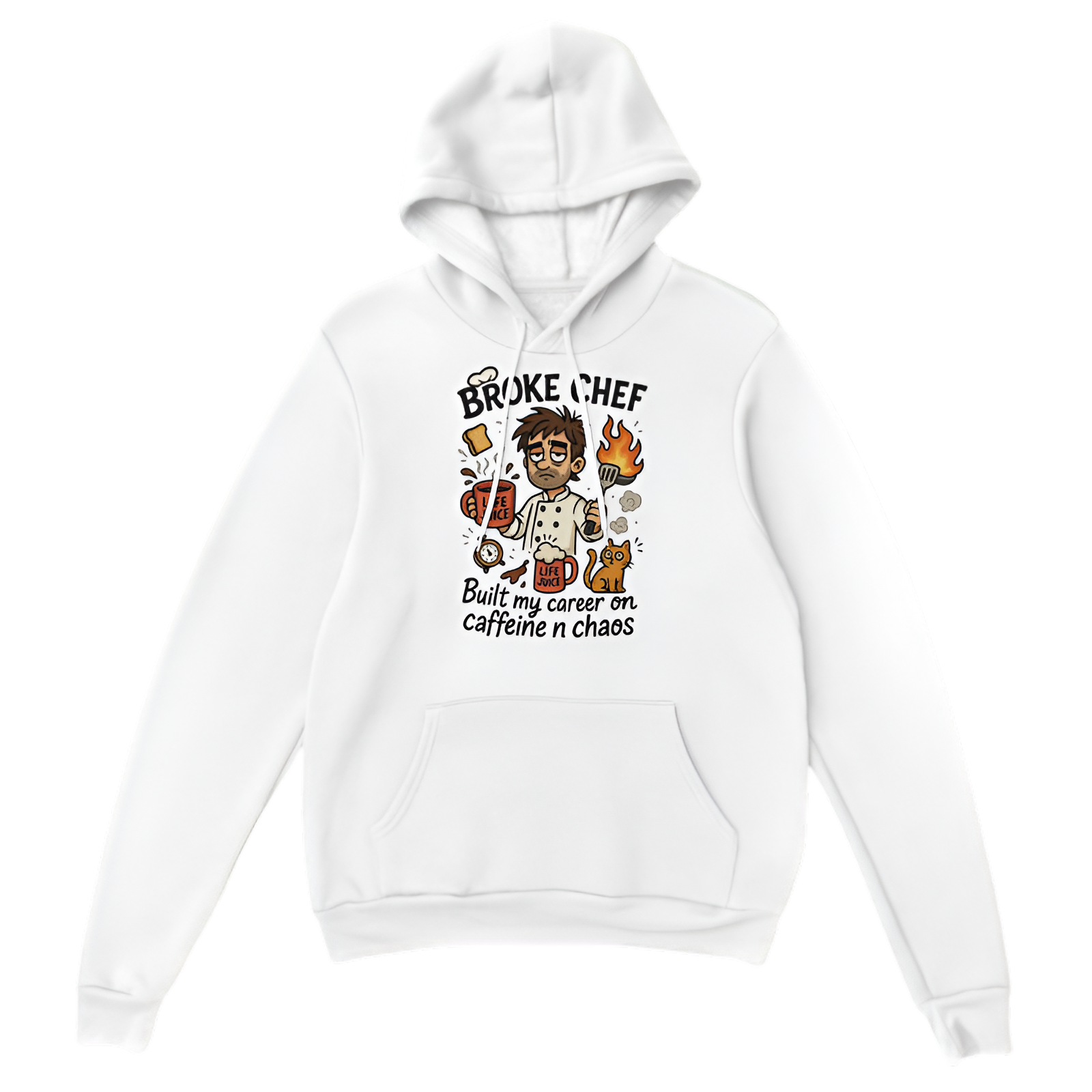 The Broke Chef Built My Career on Caffeine n Chaos hoodie is the uniform for every gritty kitchen warrior who survives shifts with a splash of coffee and a whole lotta madness. This one’s for the chefs, cooks, and caffeine-fueled creatives who built something out of scraps—and made it taste damn good. Bold, relatable, and full of flavor, this hoodie’s got your back when the espresso’s run out but the orders keep comin’.
