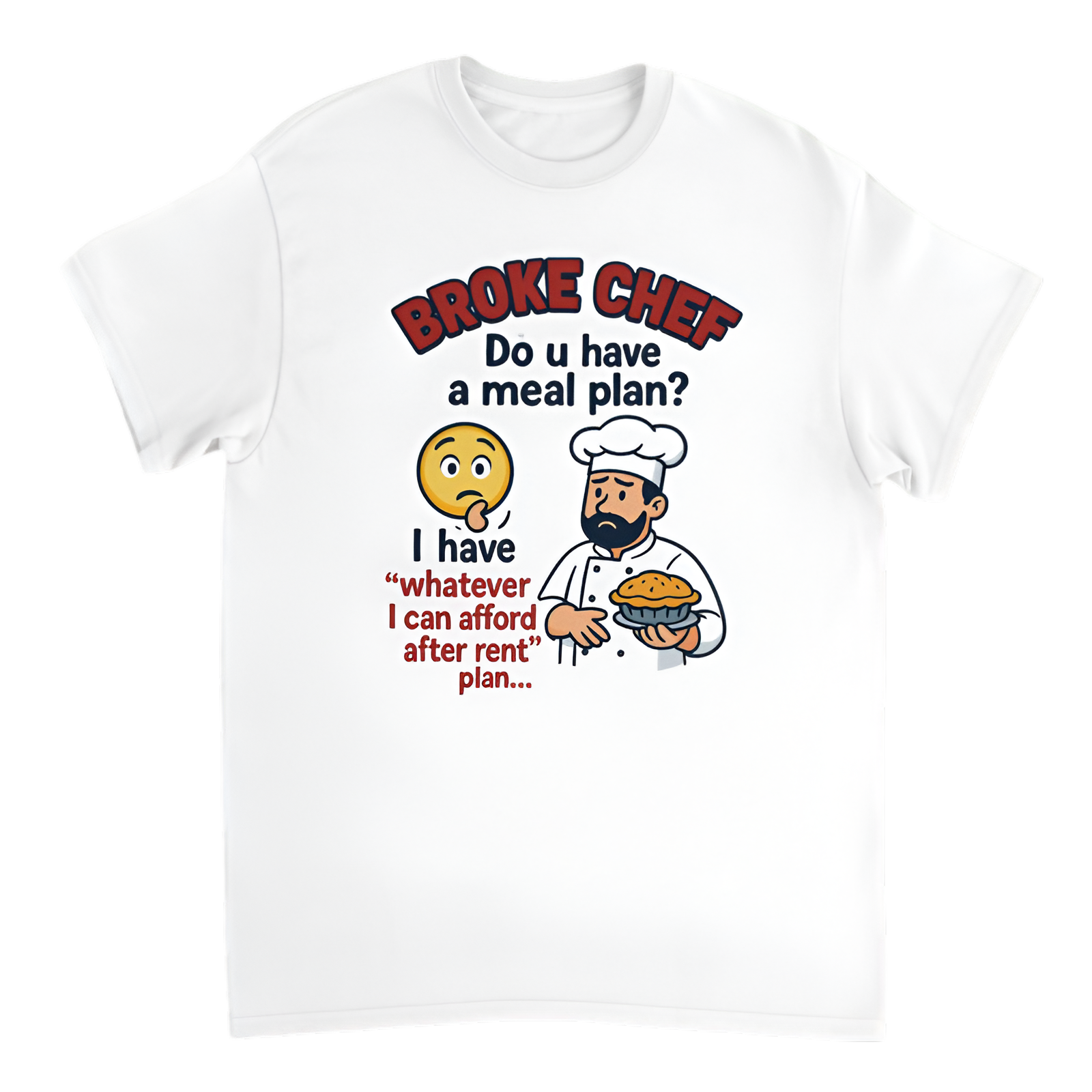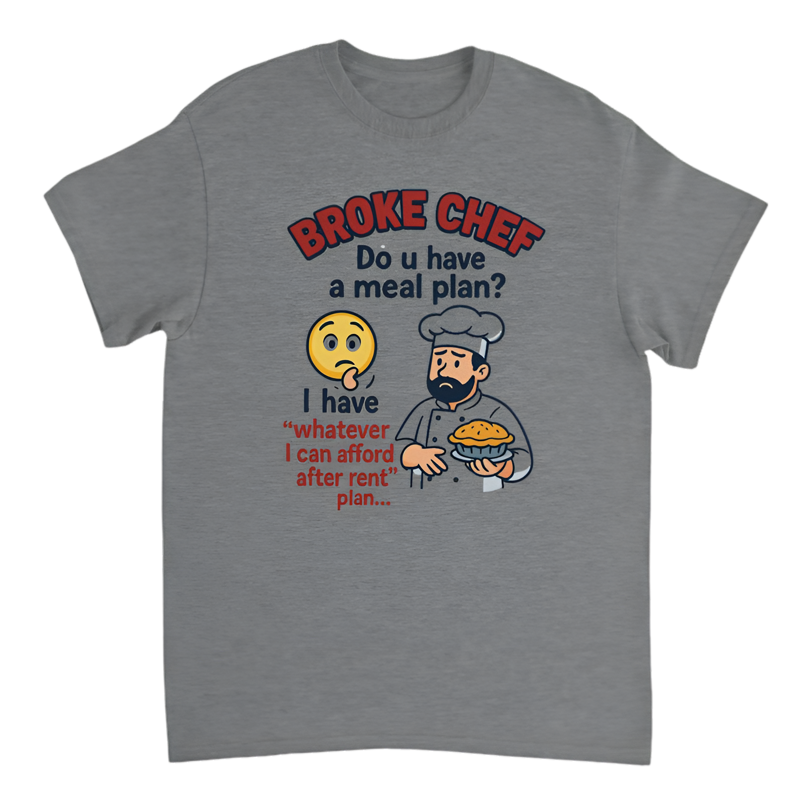 funny meal plan t-shirt, broke life shirt, budget meals tee, Broke Chef Apparel, rent struggle shirt, humorous adulting shirt