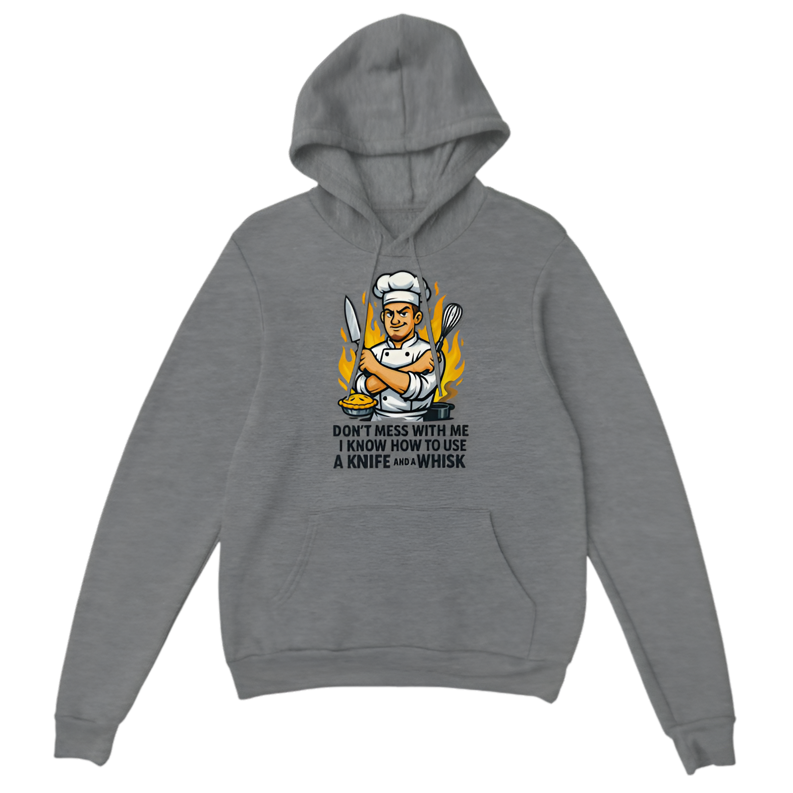 Knife and whisk hoodie, Funny chef sweatshirt, Don’t mess with me hoodie, Strong kitchen skills hoodie, Culinary attitude hoodie, Baking and cooking humor sweatshirt, Fierce kitchen warrior hoodie, Chef life apparel