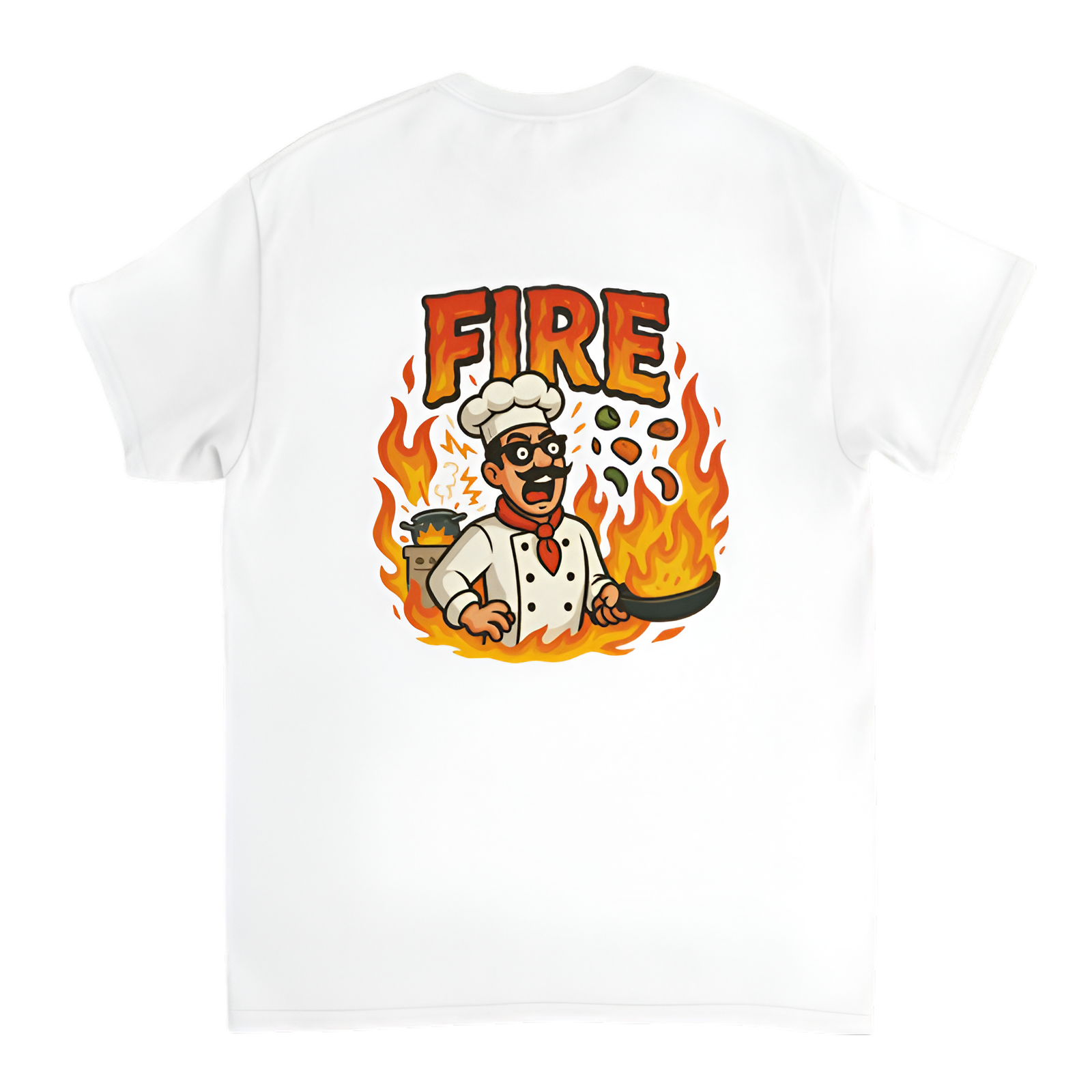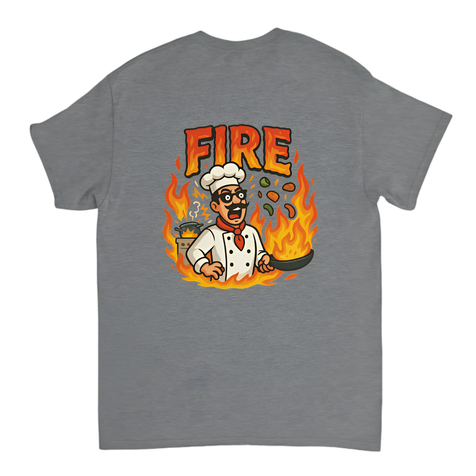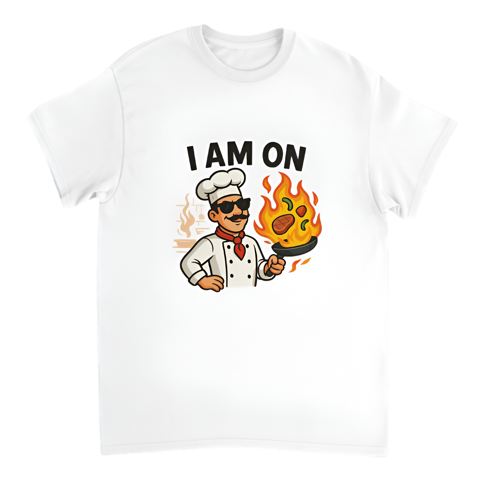 funny chef t-shirt, fire pun shirt, I am on fire tee, hot mess graphic tee, Broke Chef Apparel, humorous unisex shirt, bold kitchen t-shirt, cooking humor apparel, spicy statement tee, quirky fashion gift