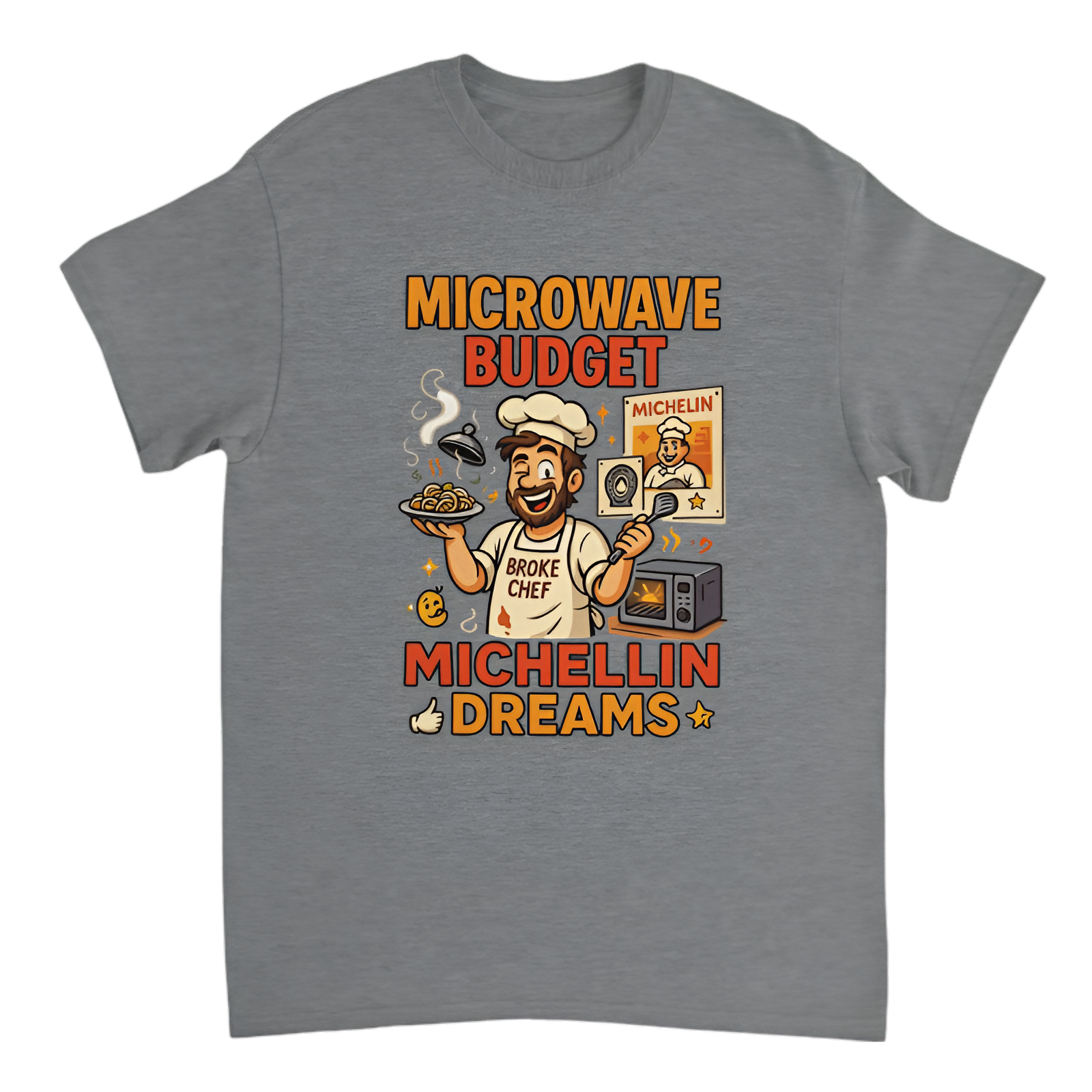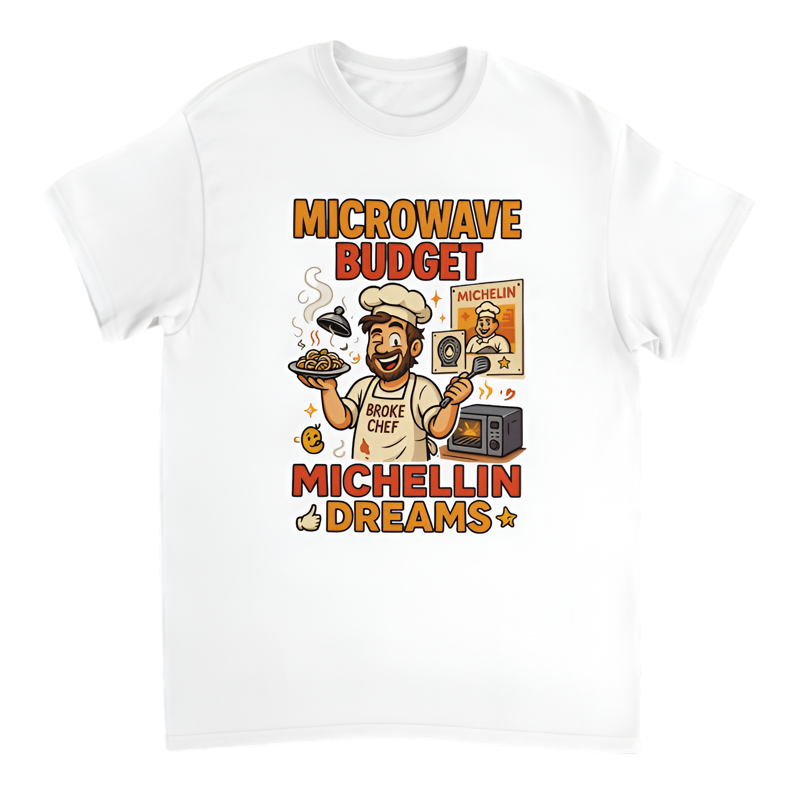 For the broke gourmet in all of us — this tee speaks to your 3AM culinary hustle. Whether you're plating instant noodles like a pro or turning frozen pizza into fine dining, “Microwave Budget, Michelin Dreams” is your deliciously relatable uniform.