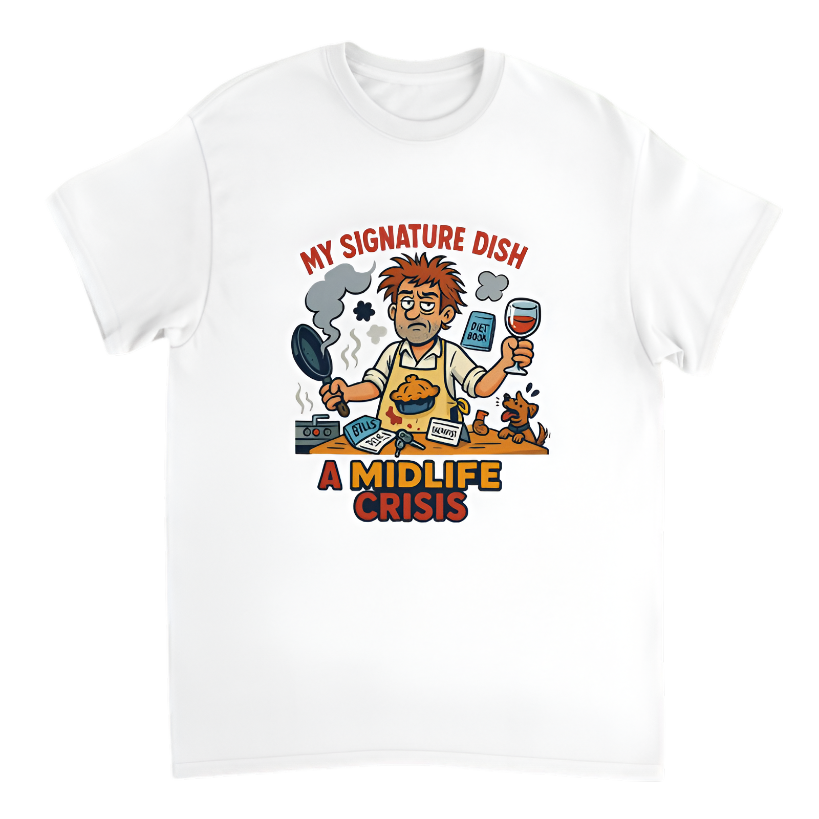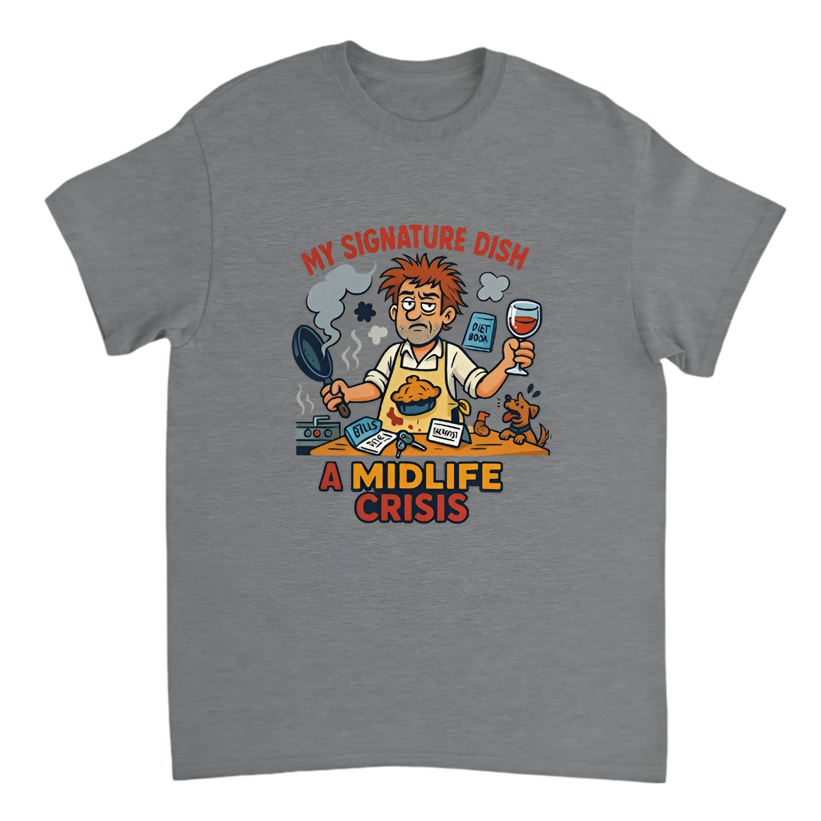 funny chef t-shirt, midlife crisis humor shirt, broke chef brand tee, cooking fail shirt, relatable kitchen chaos, adulting meme apparel