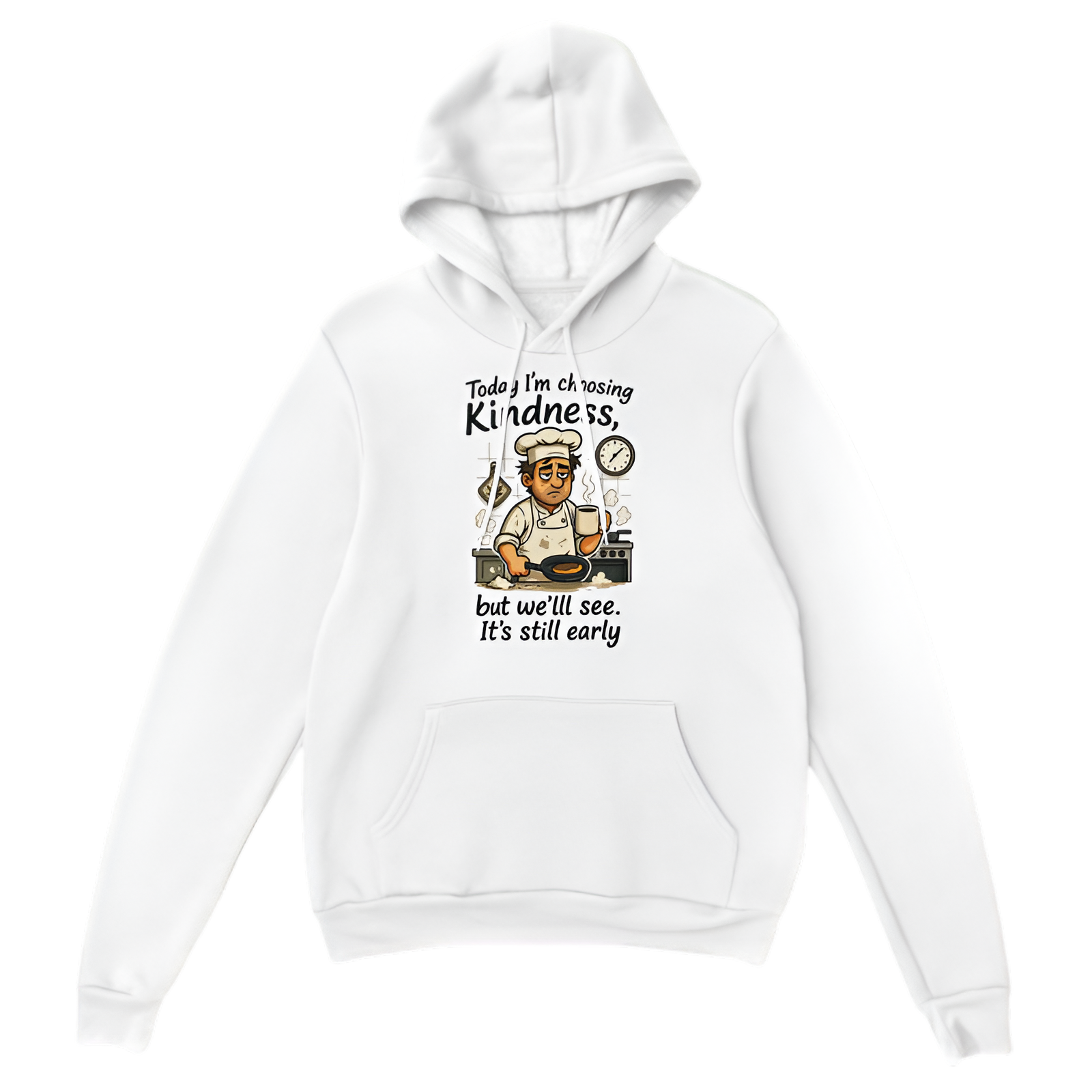 The Today I’m Choosing Kindness… but We’ll See. It’s Still Early hoodie is for the days when you're striving for positivity, but you're also keeping it real. This hoodie is a reminder that you’re all about good vibes, but let's face it, it's only morning and life might just throw a curveball. Soft, cozy, and full of personality—wear it on those days when you’re trying to stay kind, but you’re also giving yourself the grace to be human.