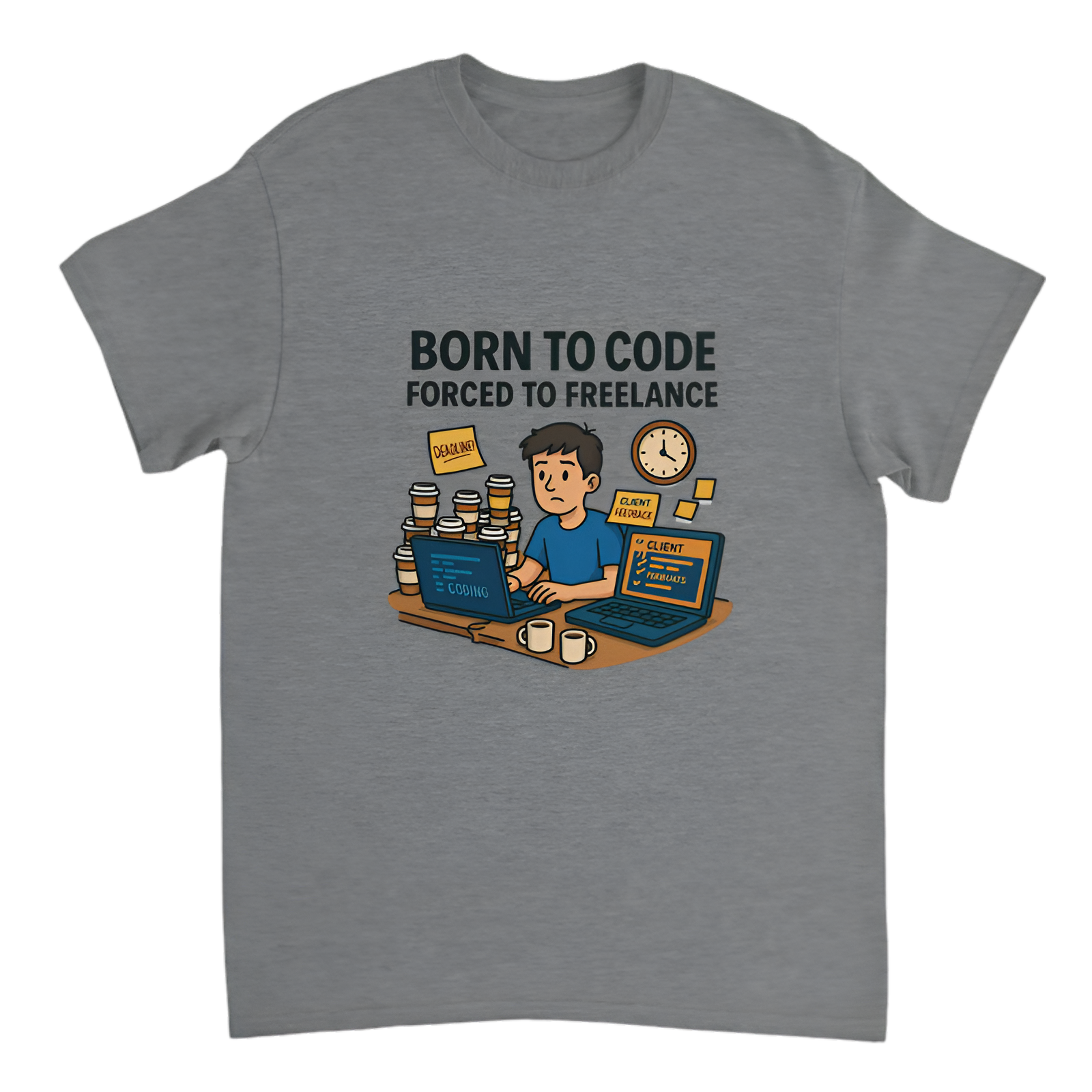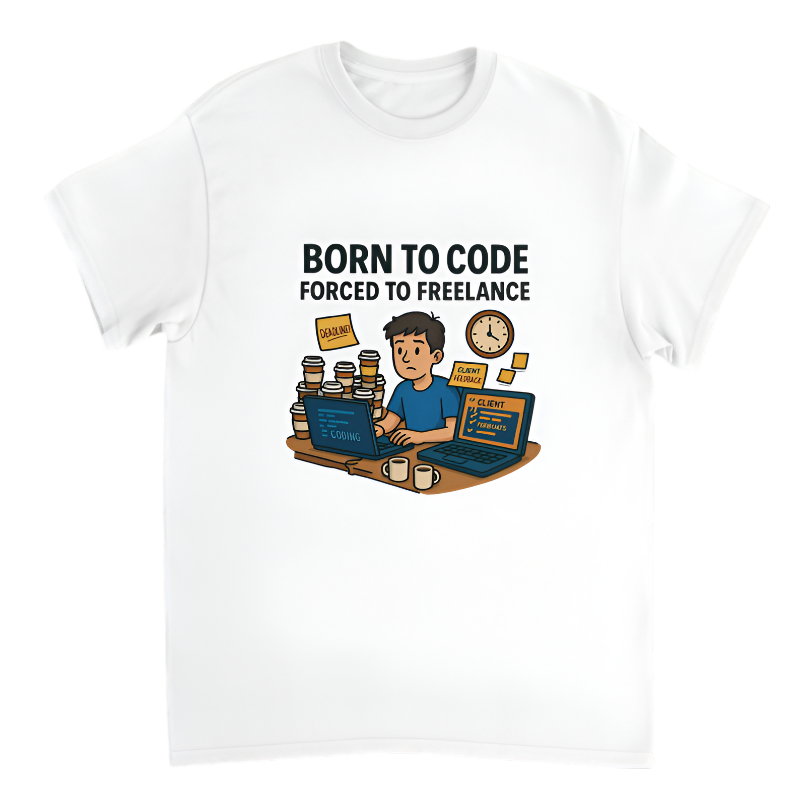 For those who were born to code but ended up hustling in the freelance grind, this “Born to code, forced to freelance” t-shirt perfectly captures the bittersweet truth. Made from soft, breathable fabric, it’s comfortable for long hours at the keyboard or casual hangouts. A must-have for any developer navigating the freelance life with humor and style.