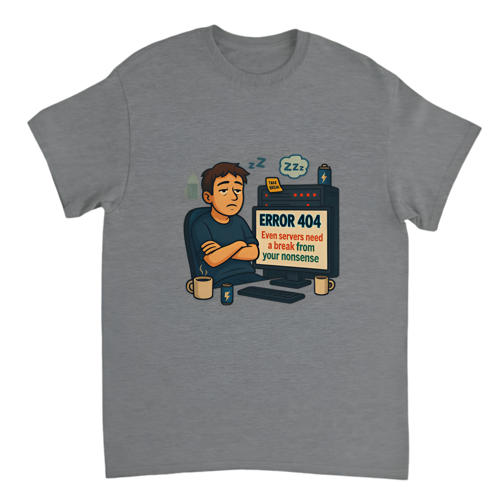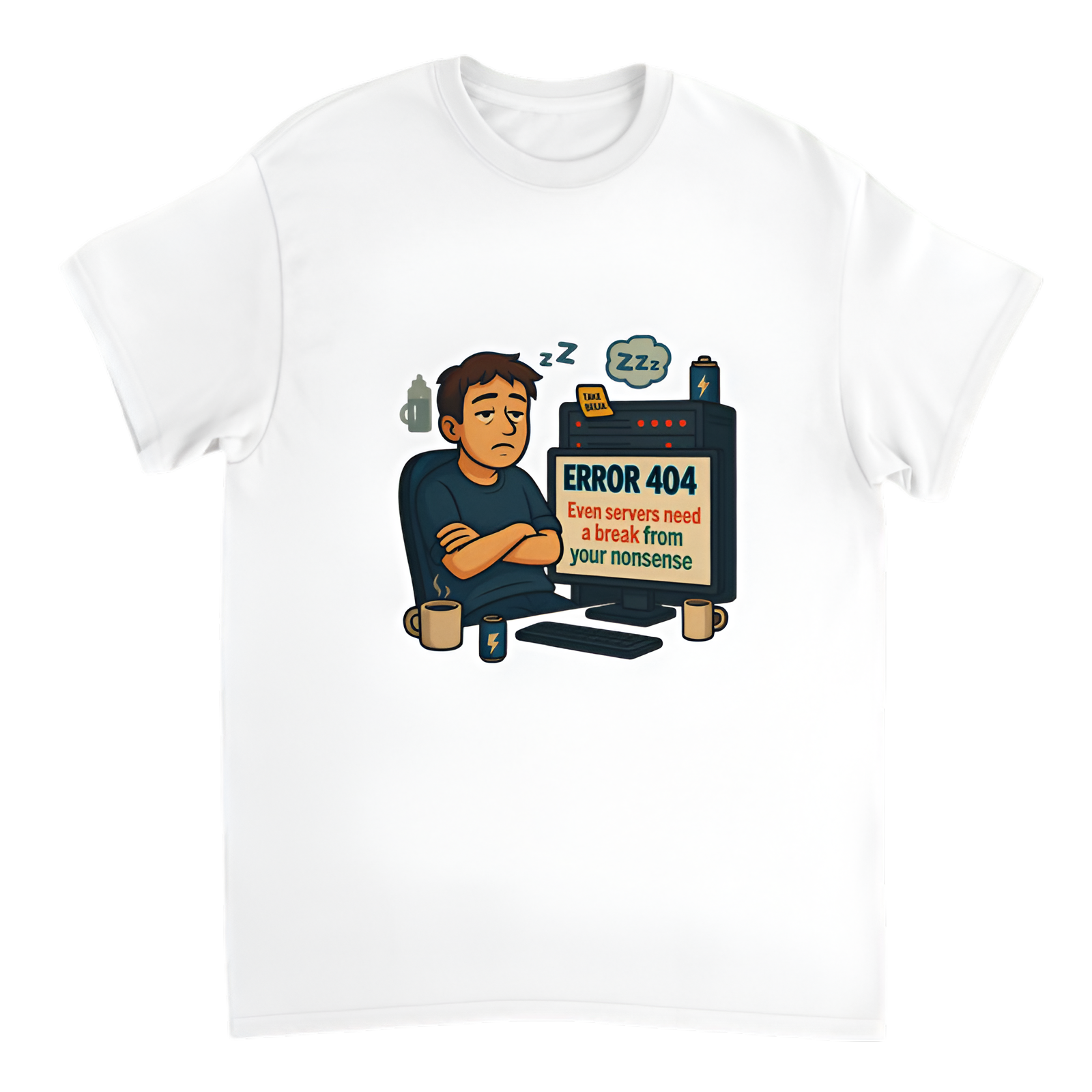 Tech support won't save you now—this "Error 404: Even servers need a break from your nonsense" t-shirt delivers peak digital sarcasm with a perfectly timed eye-roll. Crafted from soft, breathable fabric, it’s built for comfort whether you're debugging code, roasting friends in group chat, or stepping away from the chaos to reset (just like your favorite server).