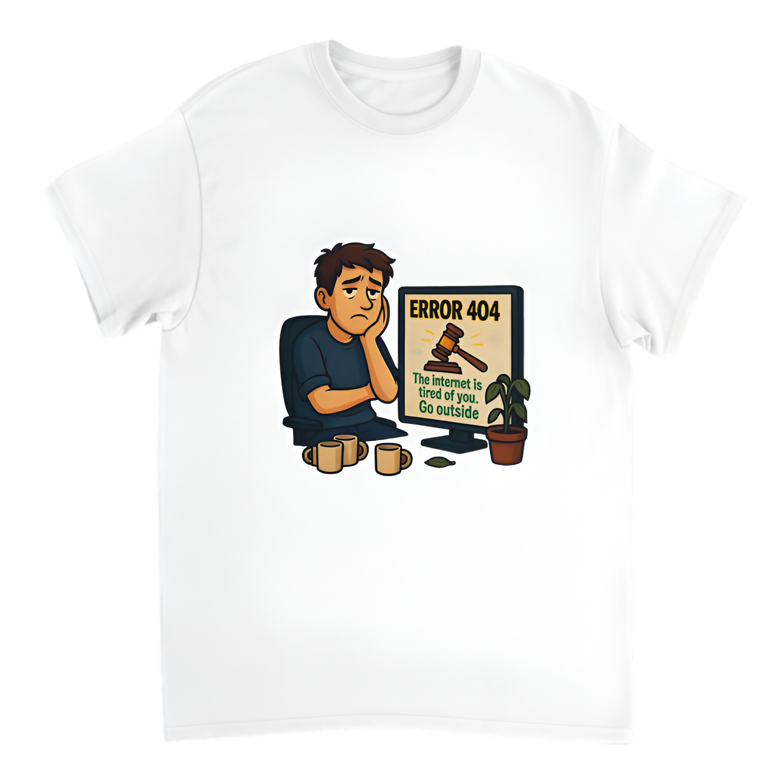 funny tech t-shirt, error 404 shirt, internet joke tee, sarcastic t-shirt, gift for programmers, geeky humor shirt, offline t-shirt, go outside shirt, unisex cotton tee, witty graphic tee