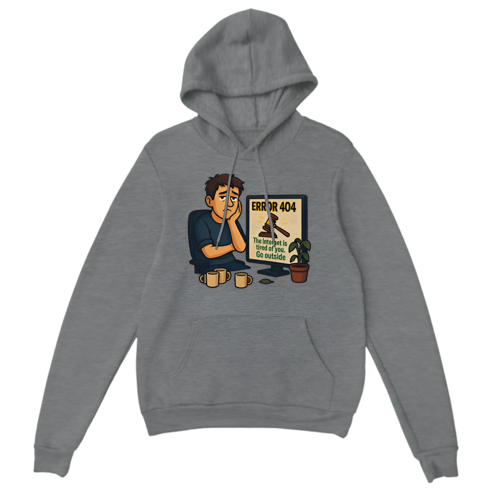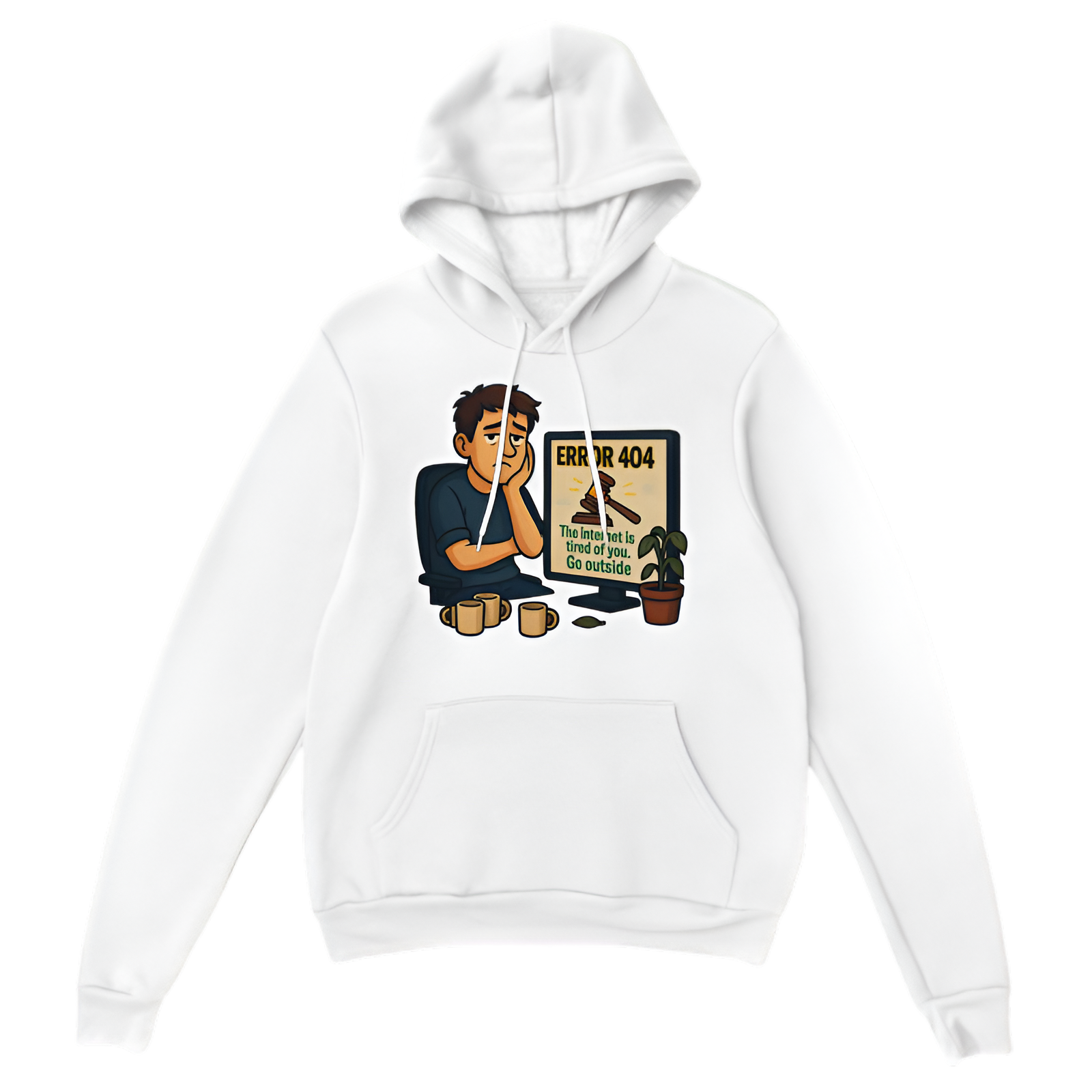 When the internet itself throws in the towel, you know it’s time to step away from the screen. This hoodie blends savage tech humor with a cozy fit, perfect for those moments when even your Wi-Fi gives up on you. Stay comfy, stay witty, and maybe take that advice—go outside!