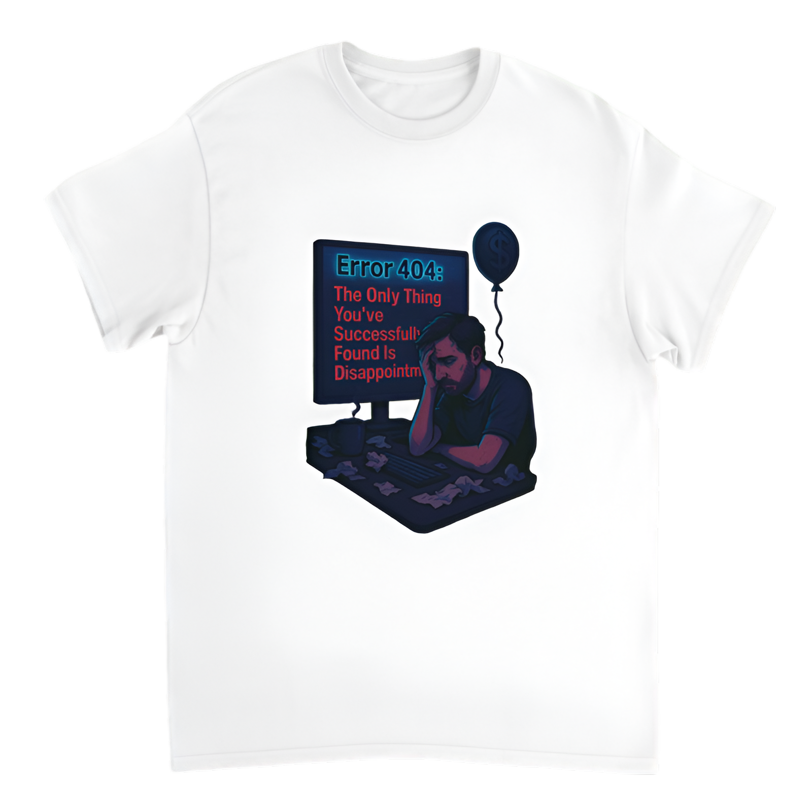 Some errors hit harder than others—especially when they mirror your life. “Error 404: The Only Thing You’ve Successfully Found Is Disappointment” is the ultimate T-shirt for techies, cynics, and anyone fluent in failure. Whether you’re debugging your code or your bad decisions, this shirt lets the world know: hope was never part of the plan. Dark, funny, and painfully relatable.