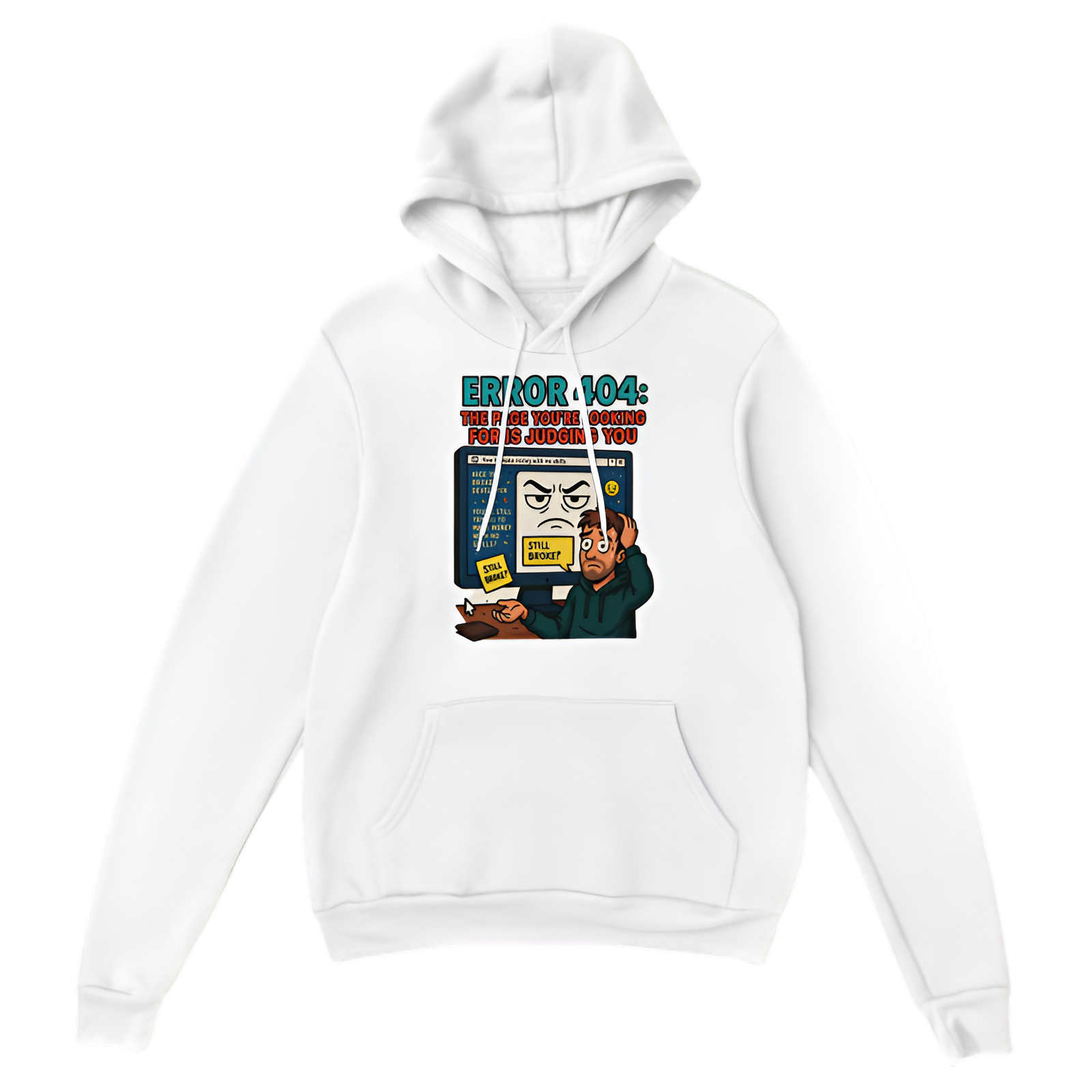 Some errors are technical. Others are personal. This “Error 404: The Page You’re Looking For Is Judging You” hoodie brings savage sarcasm to your wardrobe. Designed for developers, designers, and anyone who's ever stared at a blank page and felt personally attacked, this hoodie keeps you warm while serving up cold truth.