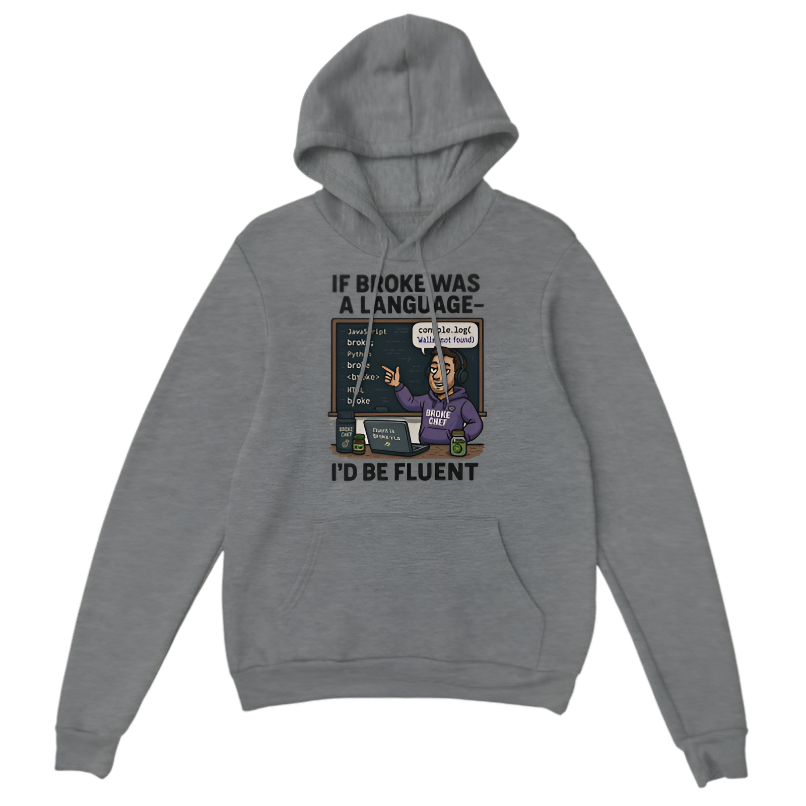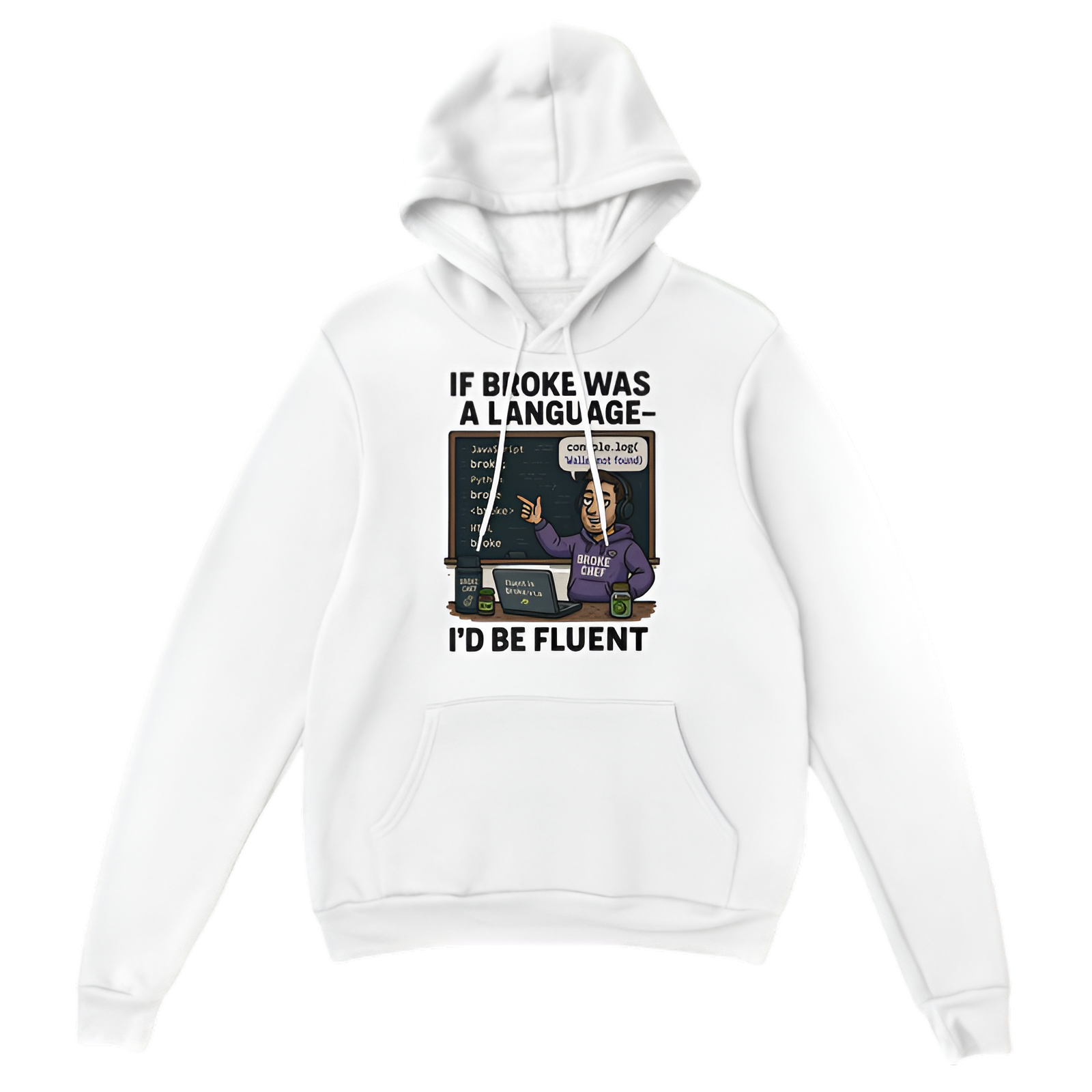 No need for Duolingo—you're already fluent in being broke. The "If broke was a language, I’d be fluent" hoodie is the perfect blend of humor and hard truth for anyone living life on a tight budget with a sharp sense of sarcasm. Made with soft, cozy fleece and a relaxed unisex fit, it's ideal for staying warm when your wallet can't.