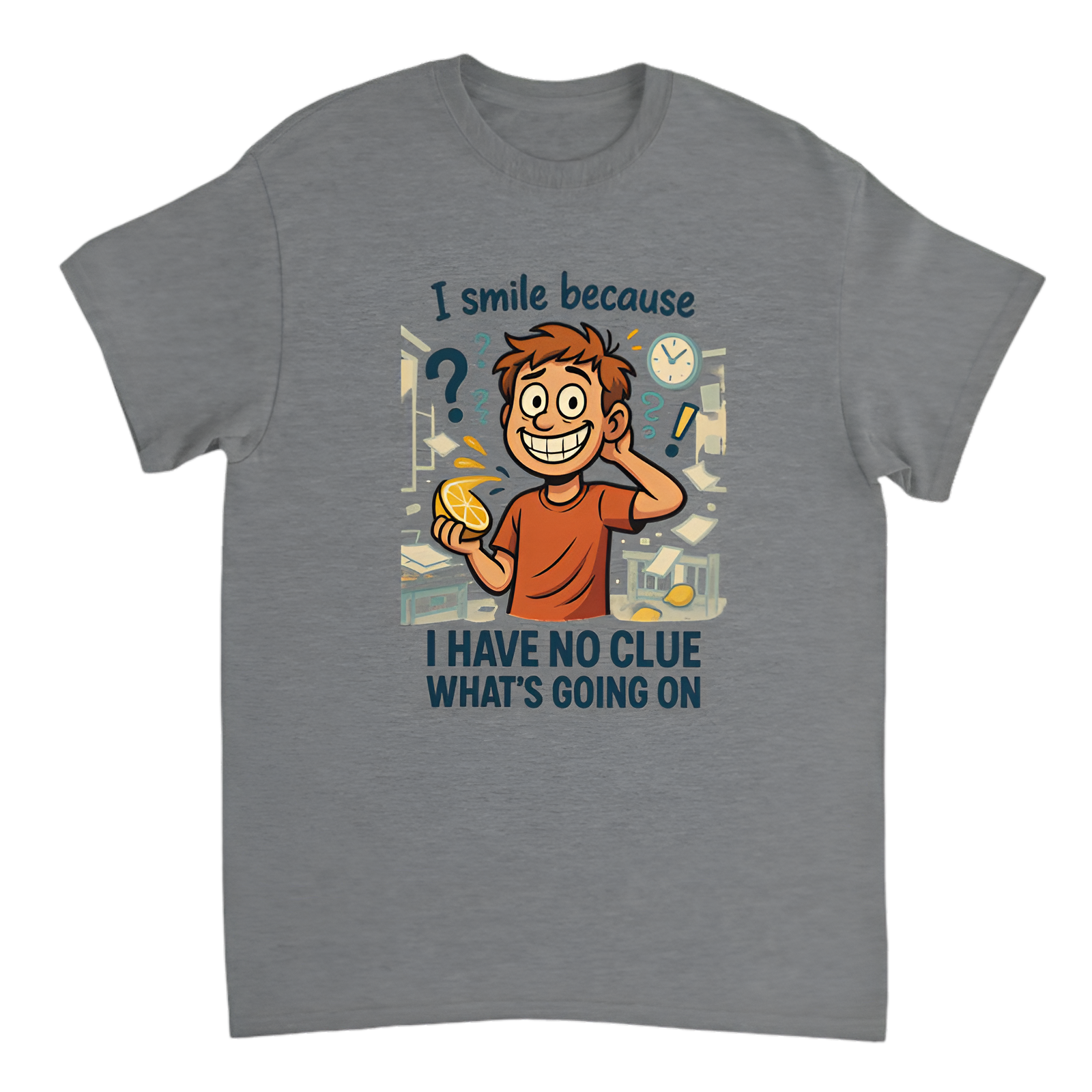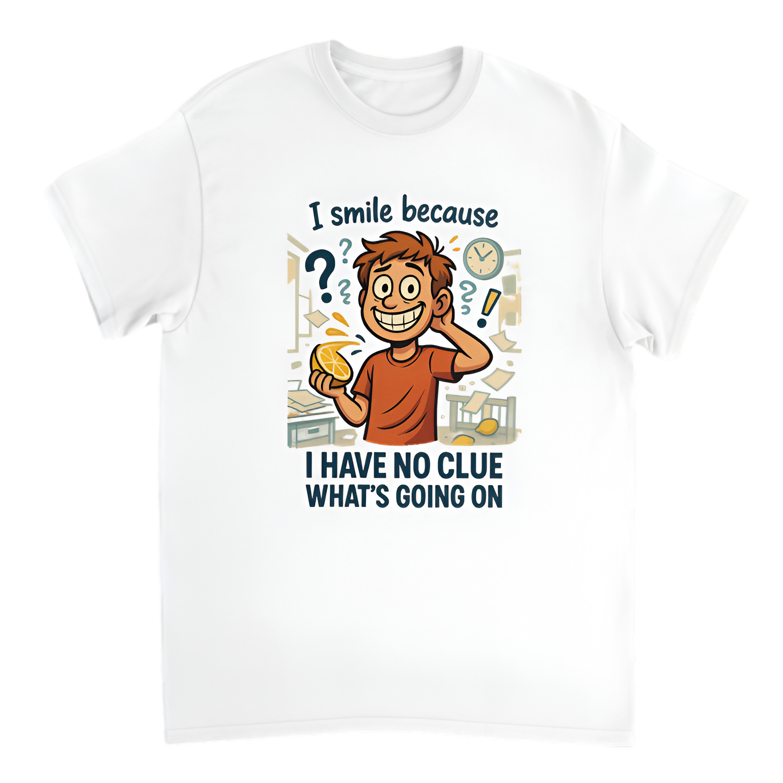 Keep it light and relatable with this funny tee that says, “I smile because I have no clue what’s going on.” Perfect for those moments when you’re just winging it and embracing the chaos with a smile. Made from soft, breathable fabric, this shirt is ideal for casual wear, social gatherings, or just chilling out.