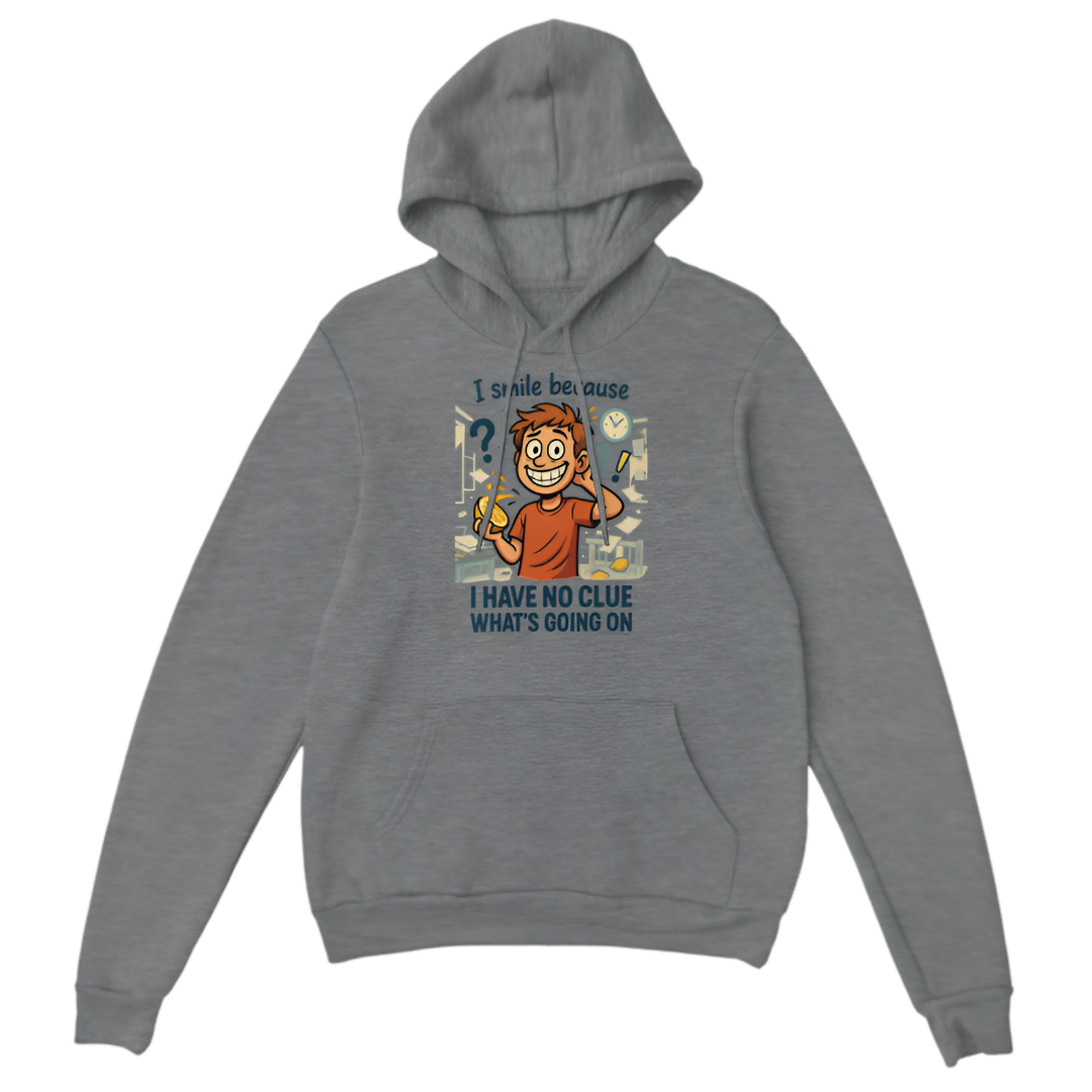 Keep it light and funny with this hoodie that says, “I smile because I have no clue what’s going on.” Perfect for those who embrace the chaos of life with humor. Made from soft, warm fabric with a relaxed fit, this hoodie offers comfort and a playful statement for everyday wear.