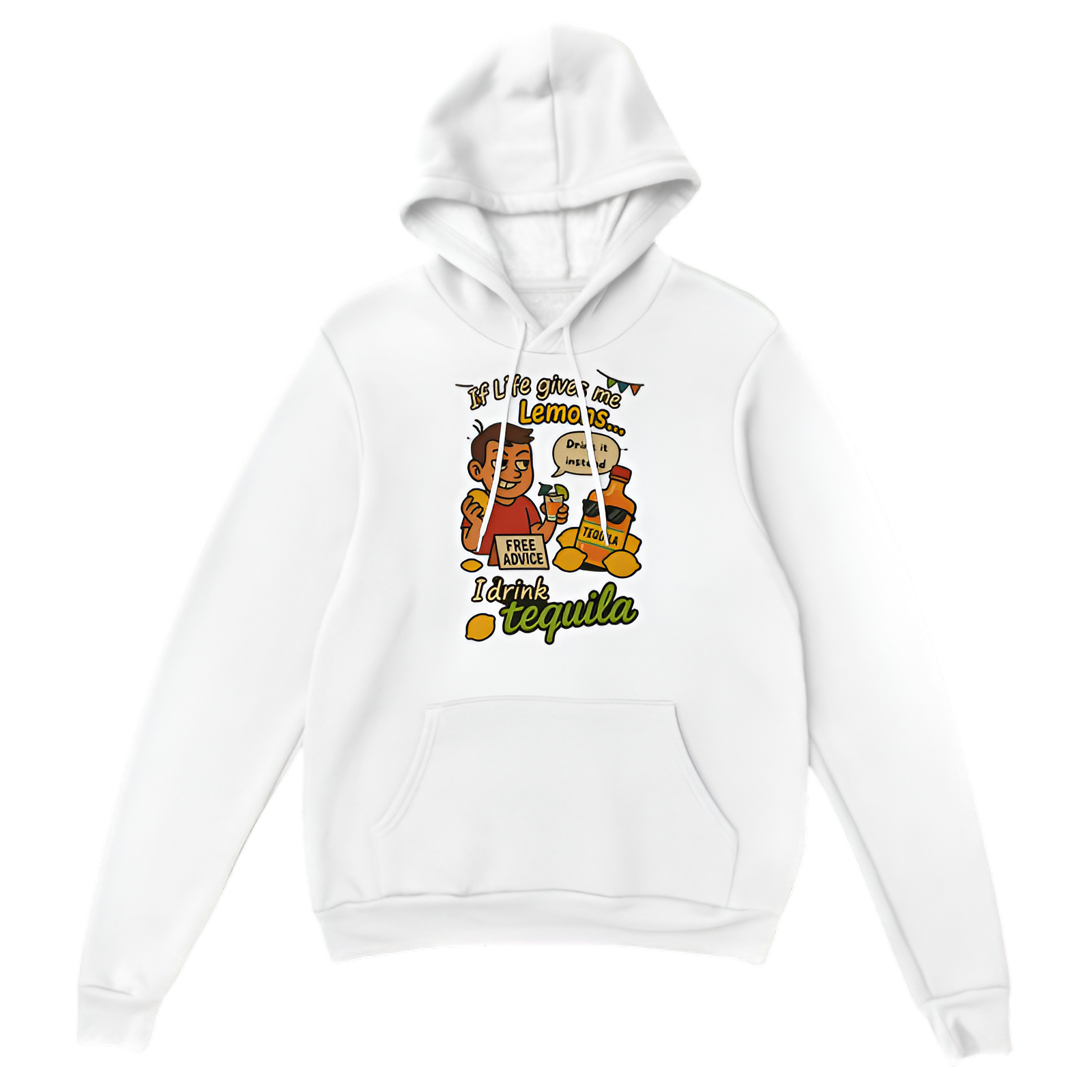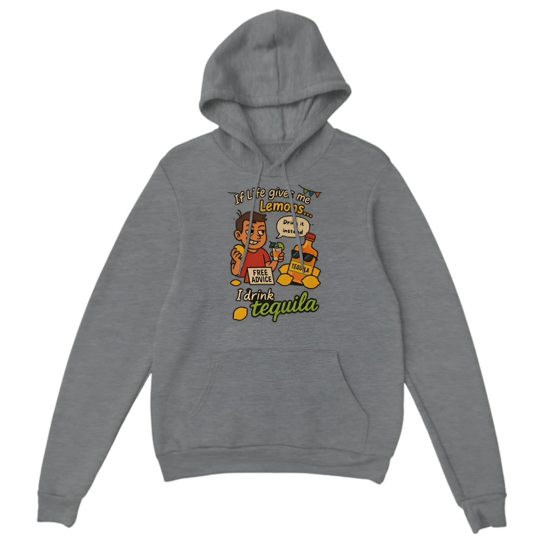 Add a splash of humor to your wardrobe with this hoodie that says, “If life giva me lemons... I drink tequila.” Perfect for those who know how to turn sour moments into a party. Made from soft, warm fabric with a relaxed fit, this hoodie keeps you cozy while showing off your fun-loving spirit.