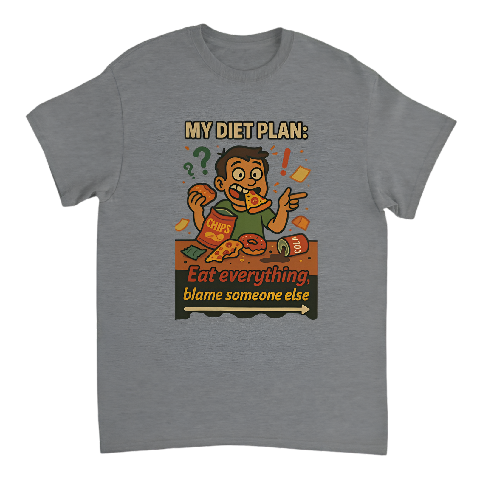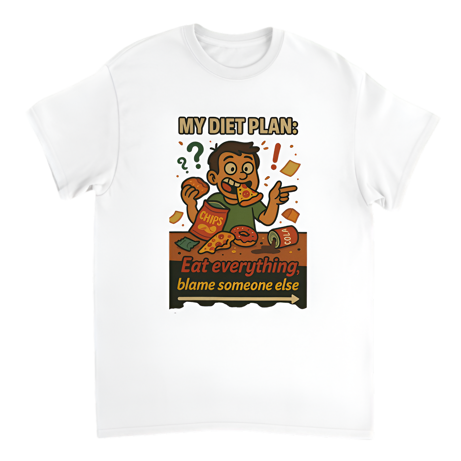Keep your diet plan simple and hilarious with this tee that says, “My diet plan: Eat everything, blame someone else.” Perfect for those who love to joke about their food habits and embrace life’s indulgences with humor. Made from soft, breathable fabric, this shirt is ideal for casual outings, foodies, or just lounging around.