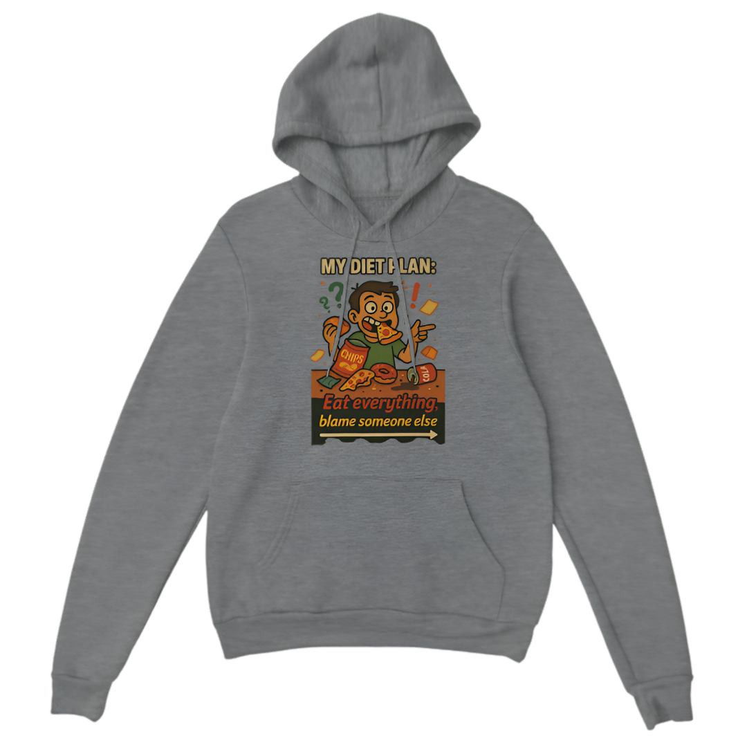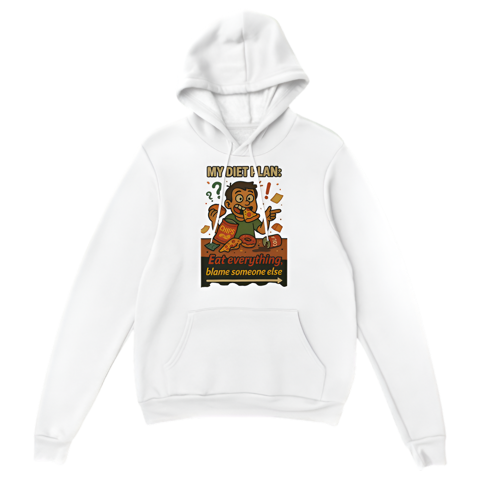 Rock this hoodie with the hilarious quote, “My diet plan: Eat everything, blame someone else.” Perfect for food lovers who don’t take dieting too seriously. Made from soft, warm fabric with a relaxed fit, this hoodie combines comfort with cheeky humor.
