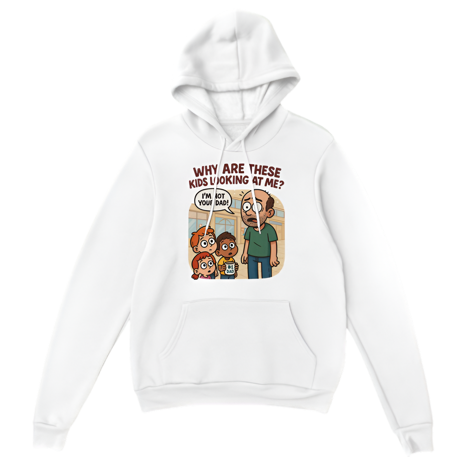 Stay warm and witty with this hoodie featuring the humorous line, “Why are these kids looking at me, I am not their dad.” Perfect for anyone who enjoys a clever, cheeky statement that sparks laughs. Made from soft, cozy fabric with a comfortable fit, this hoodie is ideal for casual outings, relaxed days, or making a funny impression wherever you go.