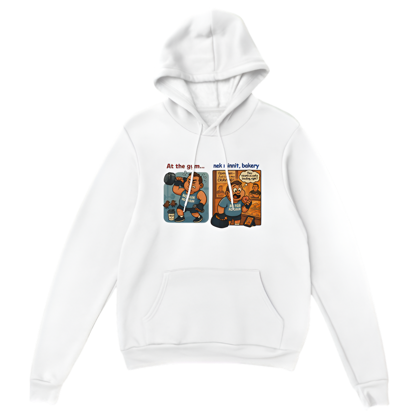 nek minnit hoodie, gym fail hoodie, bakery joke hoodie, kiwi humor apparel, aussie slang hoodie, funny casual hoodie, nek minnit quote hoodie, fitness humor hoodie, cheeky humor hoodie, kiwi lifestyle hoodie
