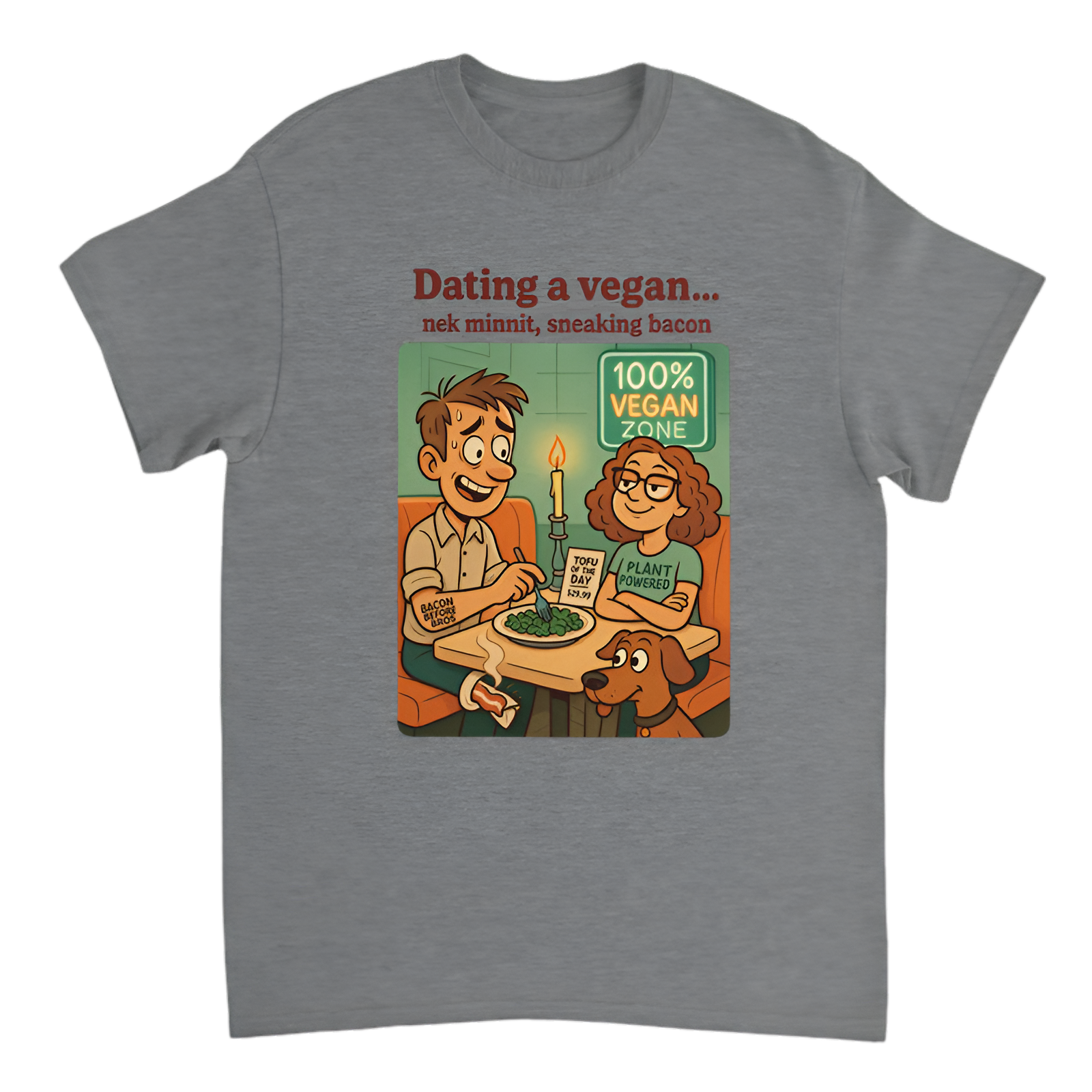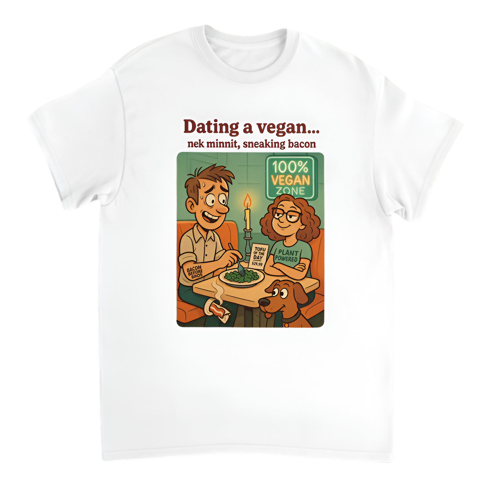 Dating a vegan seemed like a breeze, but nek minnit, you’re sneaking bacon under the radar. This hilarious tee perfectly captures those little guilty pleasures and cheeky contradictions that make life interesting. Made with soft, comfy fabric, it’s ideal for anyone who loves a bit of savage humor wrapped in everyday realness.