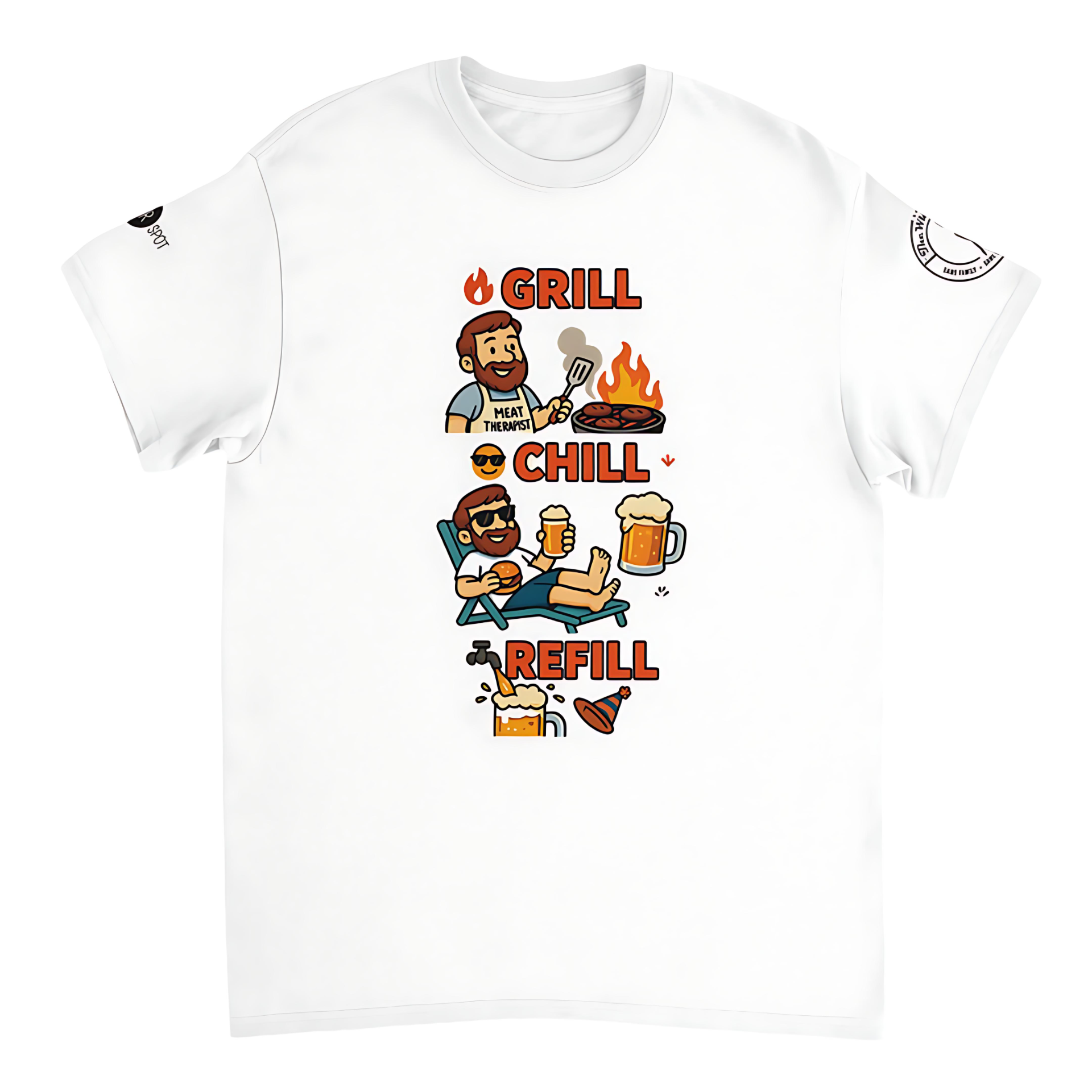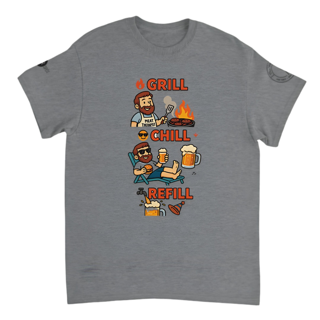 grill master t-shirt, summer bbq tee, chill and grill shirt, refill beer shirt, funny weekend t-shirt, barbecue lifestyle tee, beer and grill humor shirt, backyard party shirt, easygoing men’s t-shirt, casual grill day apparel