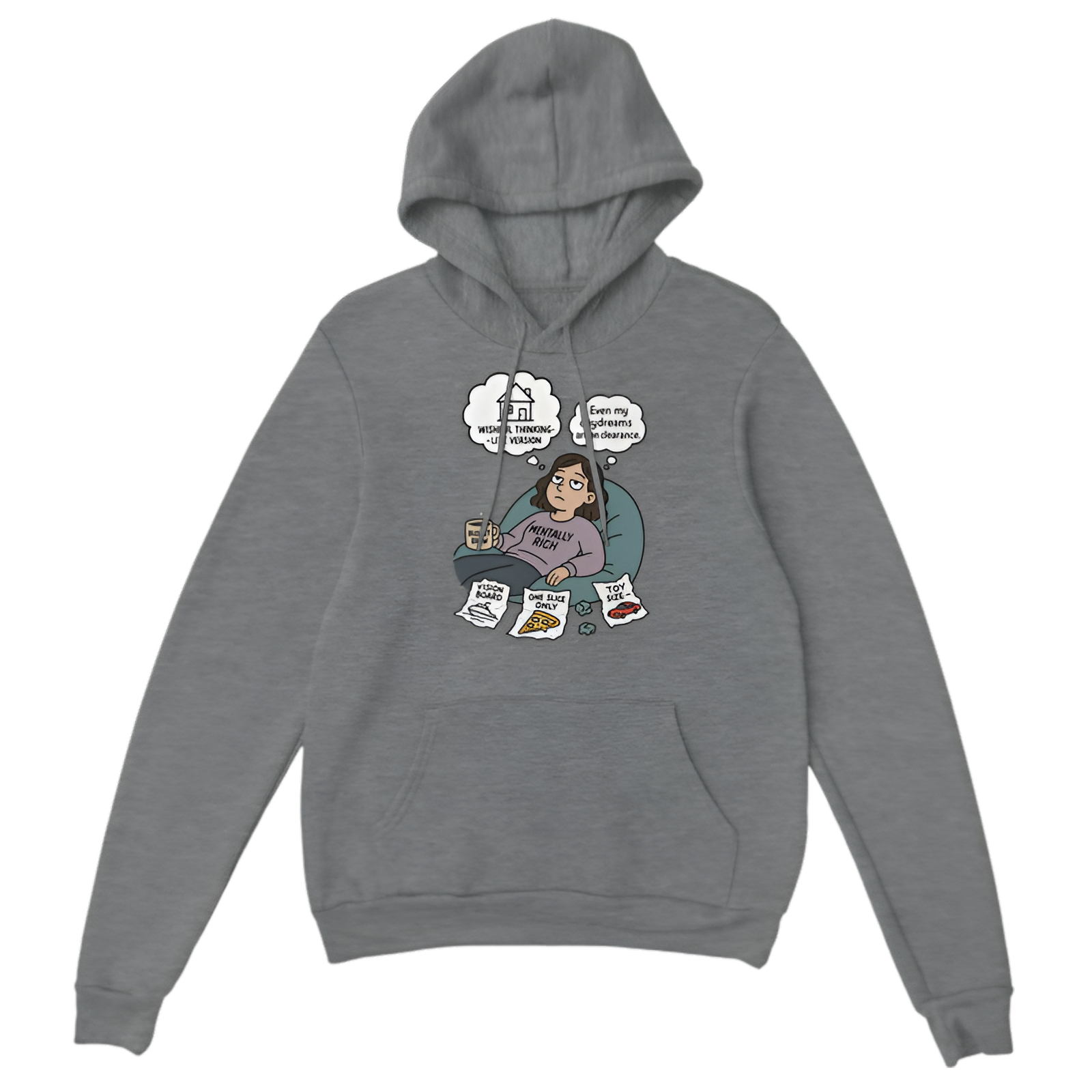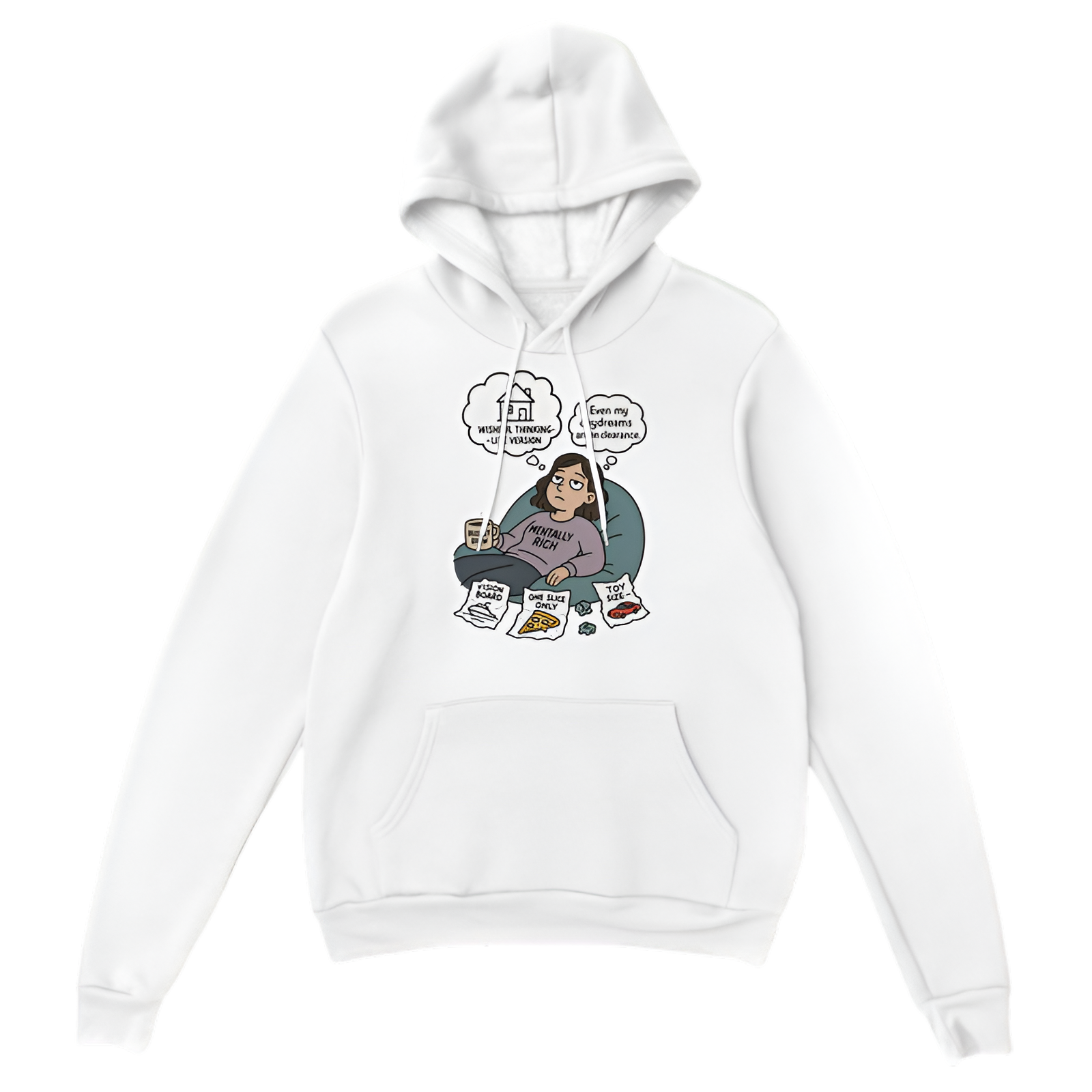 funny broke hoodie, imagination on a budget hoodie, broke girl hoodie, humorous hoodie, witty graphic hoodie, financial humor hoodie, creative budget hoodie, female budget-conscious hoodie