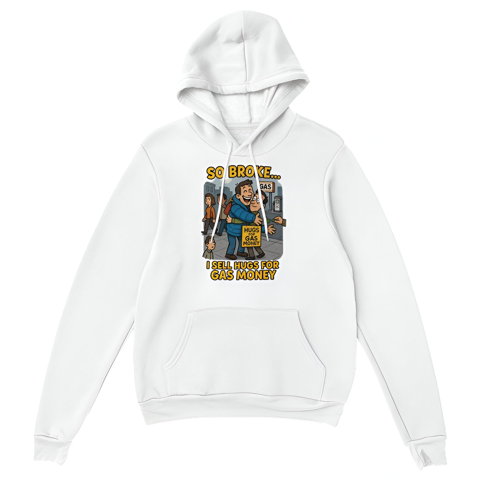 Fuel prices are high, funds are low, but hugs? Always in stock. The “So Broke… I Sell Hugs for Gas Money” hoodie is the perfect blend of desperation and charm, served with a side of broke humor. Whether you're actually hugging for cash (no judgment) or just trying to survive the week, this hoodie will keep you warm, make people laugh, and maybe even earn you a tip.