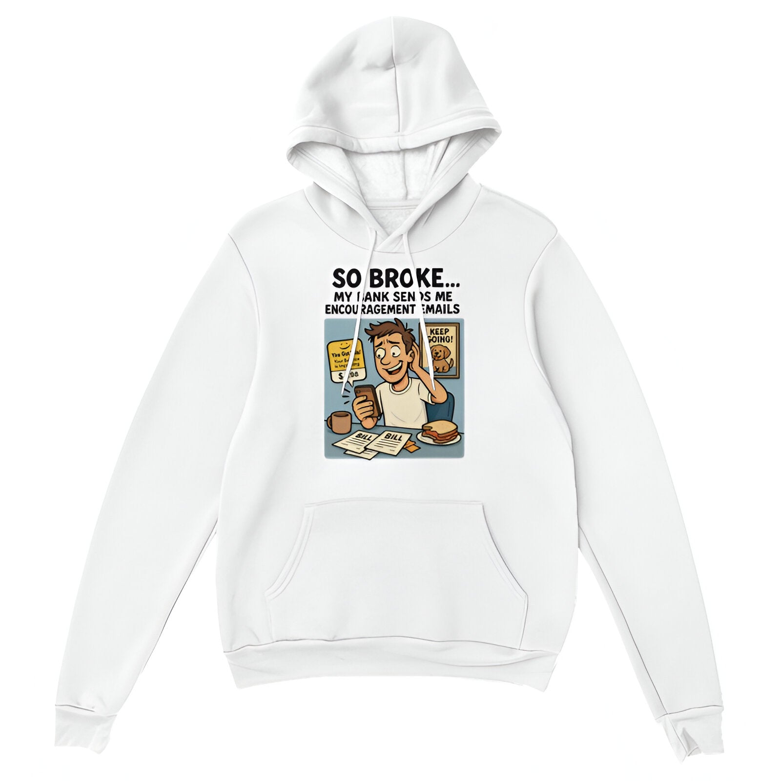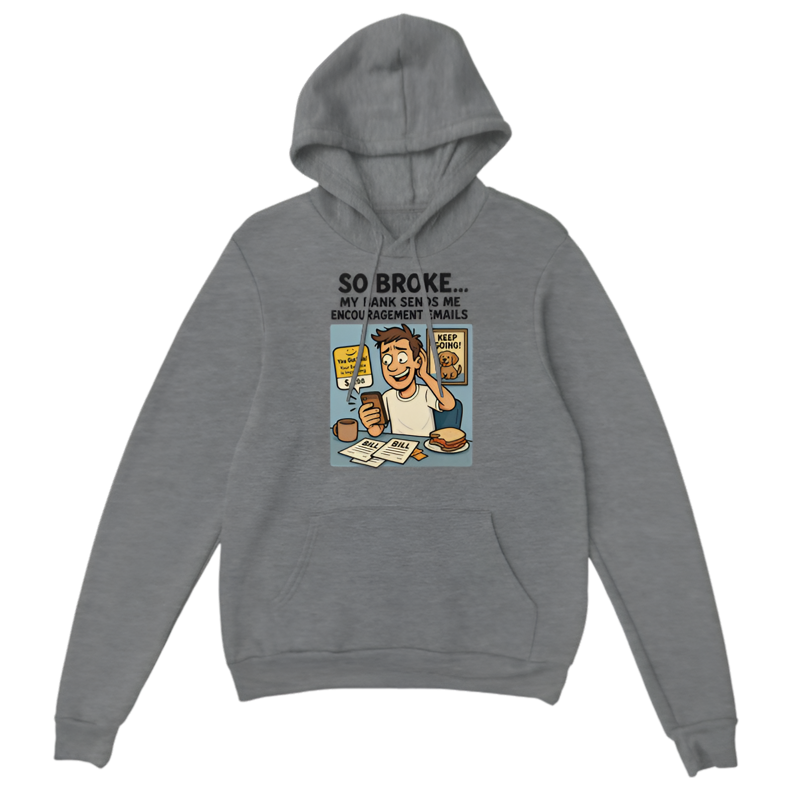 Funny men’s bank hoodie, “So Broke” encouragement hoodie, Broke life humor hoodie for guys, Hilarious financial struggle hoodie, Sarcastic money hoodie for men, Men’s graphic hoodie broke design, Bank account joke hoodie, Adulting hoodie with humor