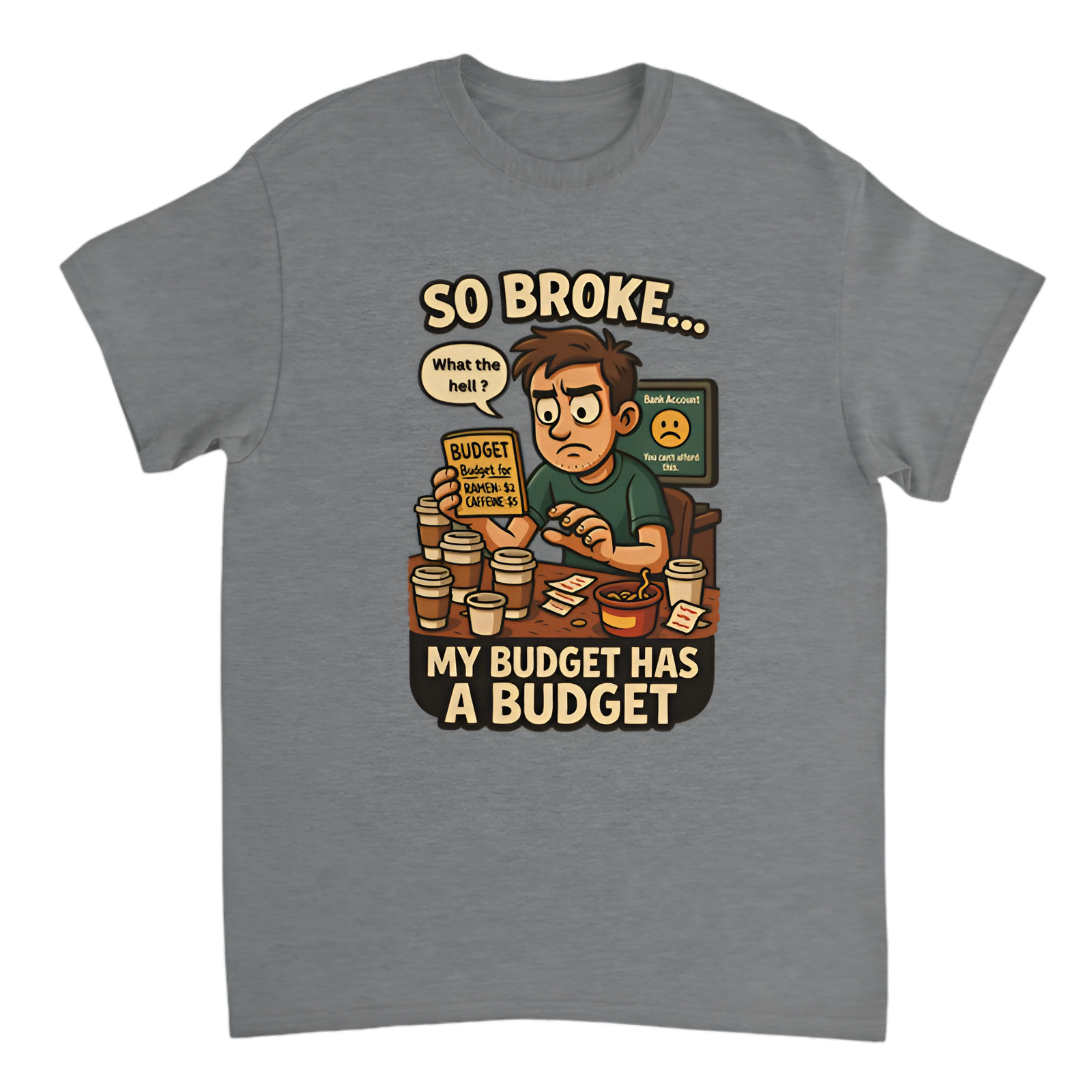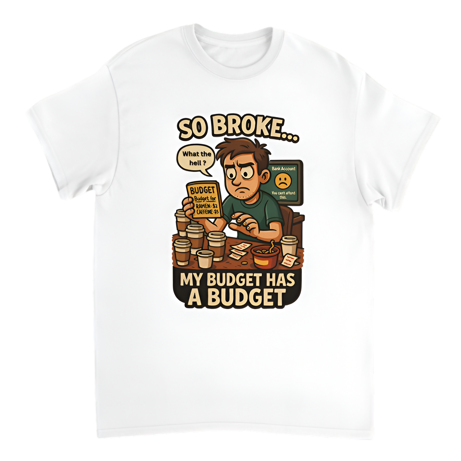 When you're so broke that even your budget needs a budget, it's time to wear the truth loud and proud. This witty T-shirt says it all: “So Broke… My Budget Has a Budget.” A perfect fit for guys who juggle rent, ramen, and reality with a sense of humor. It’s the perfect broke-but-proud uniform for modern men surviving on cents and sarcasm.